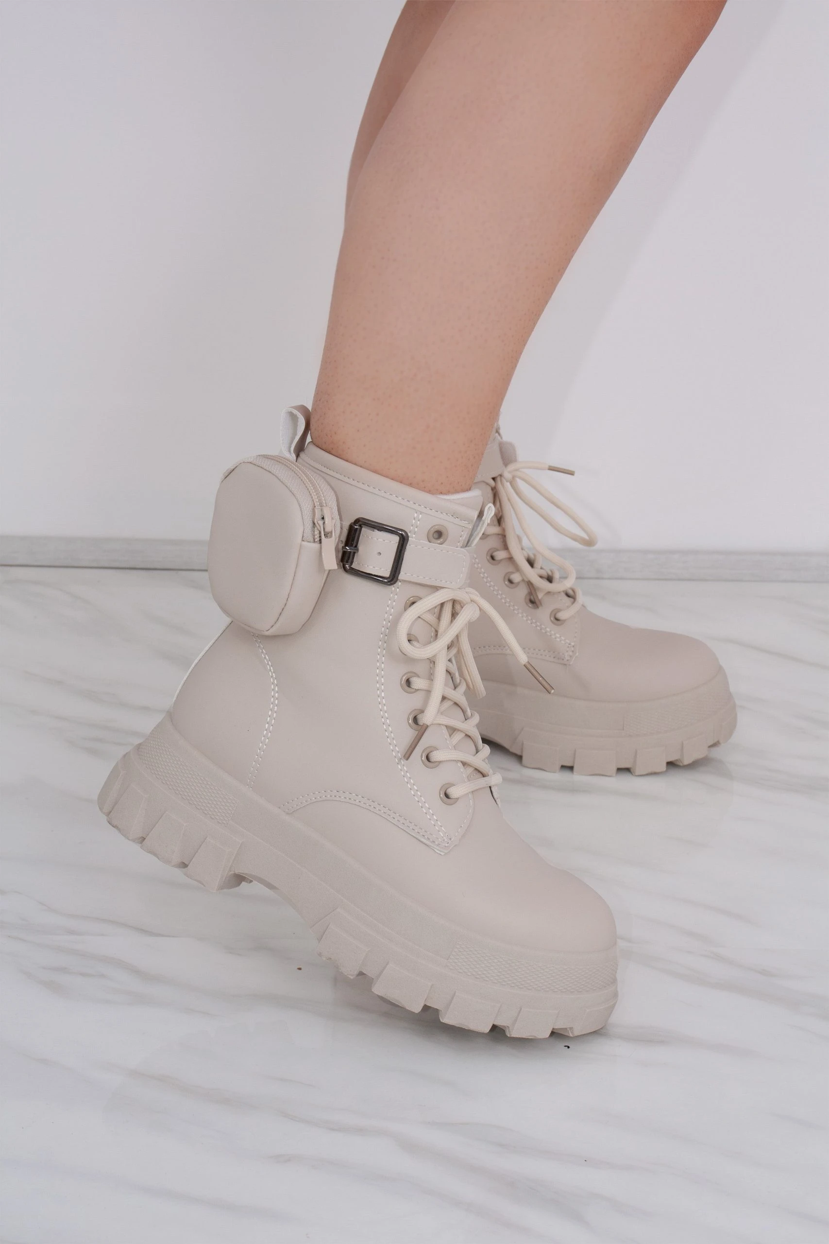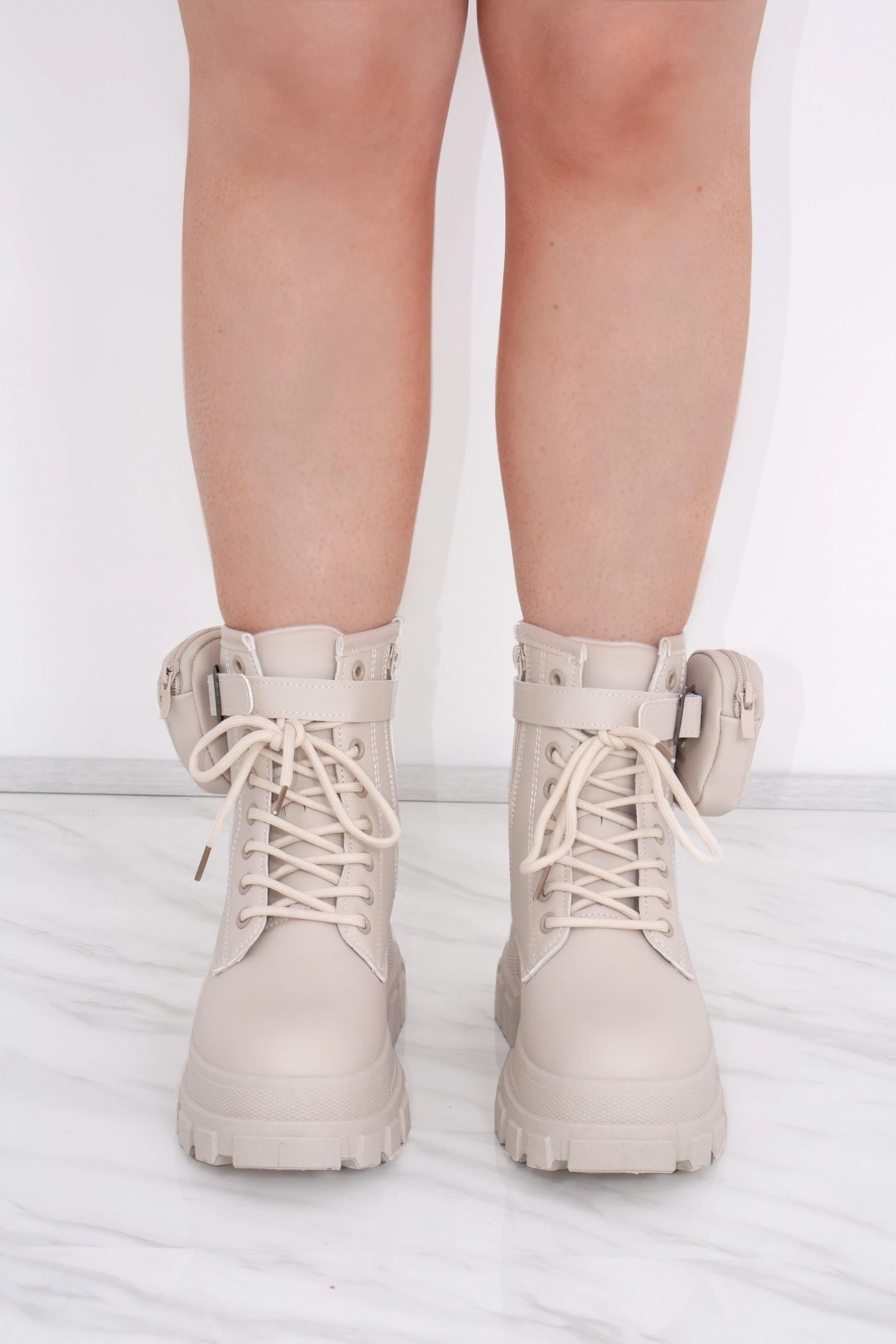 Wardrobe essential boot. Featuring a chunky platform soul, lace up style and side zip bag. Wear these from day to night.