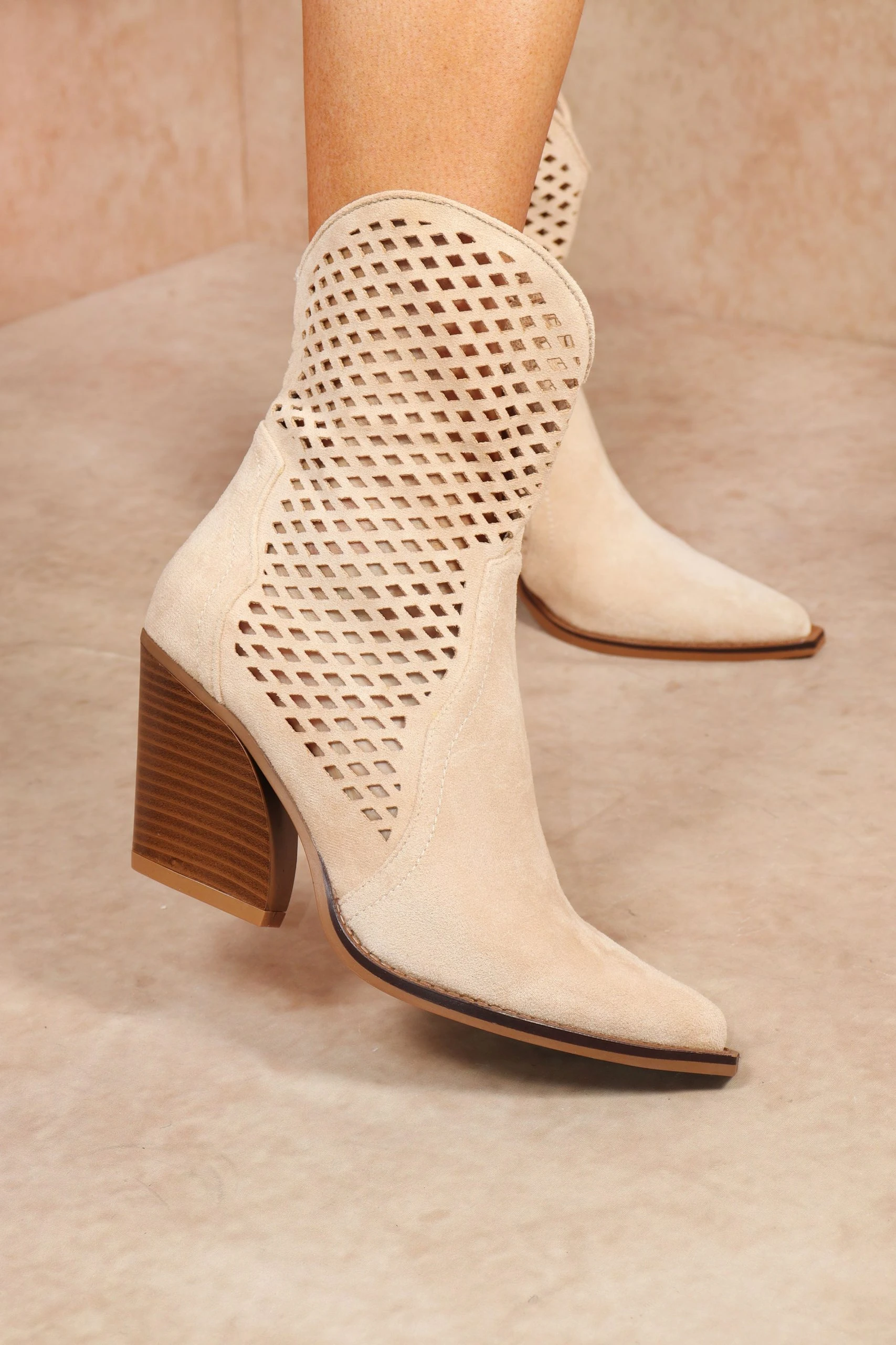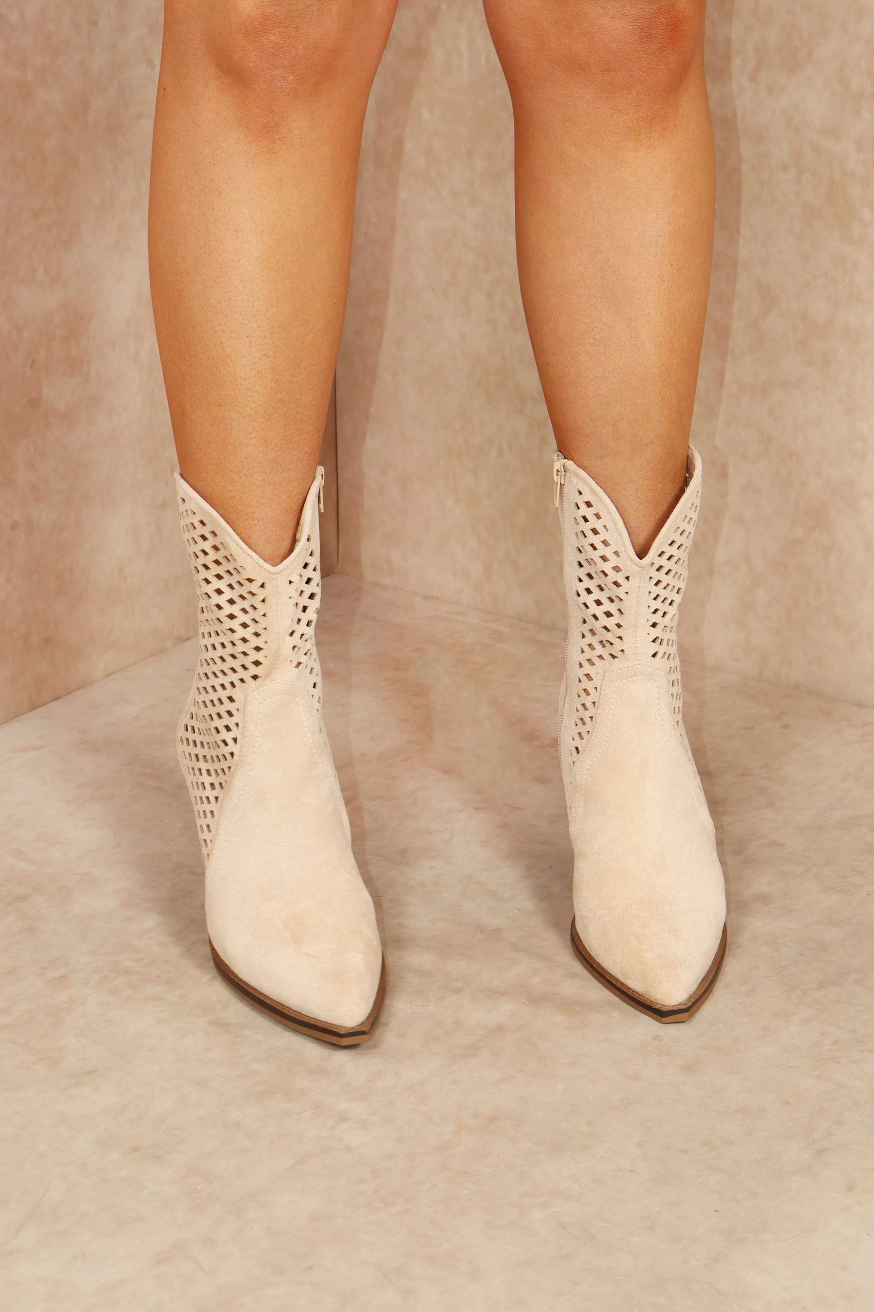 Miss Moda Luxe Beige Cut Out Heeled Cowboy Boots