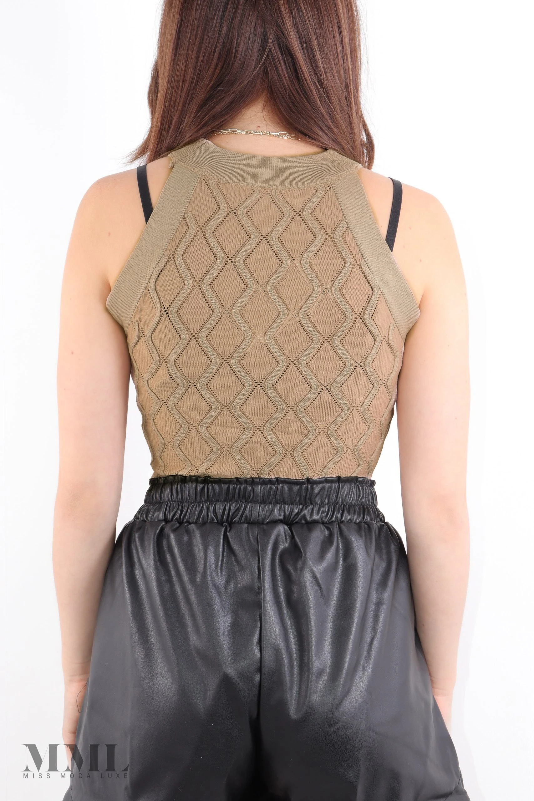 Add this must have bodysuit to your new season wardrobe. Featuring a high quality stretch knit material, and a high round neck, sleeveless design. We are obsessed with this – perfect for layering in these colder months.