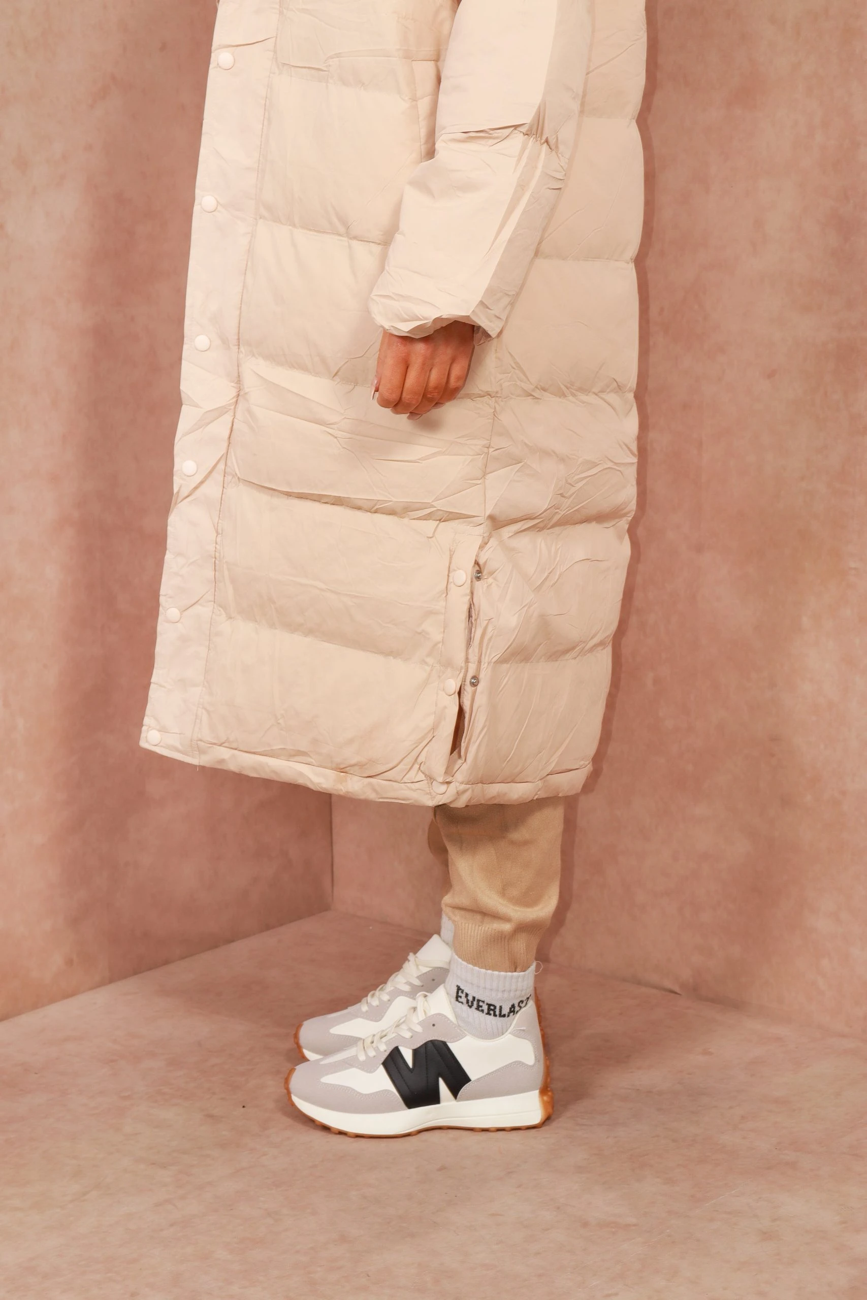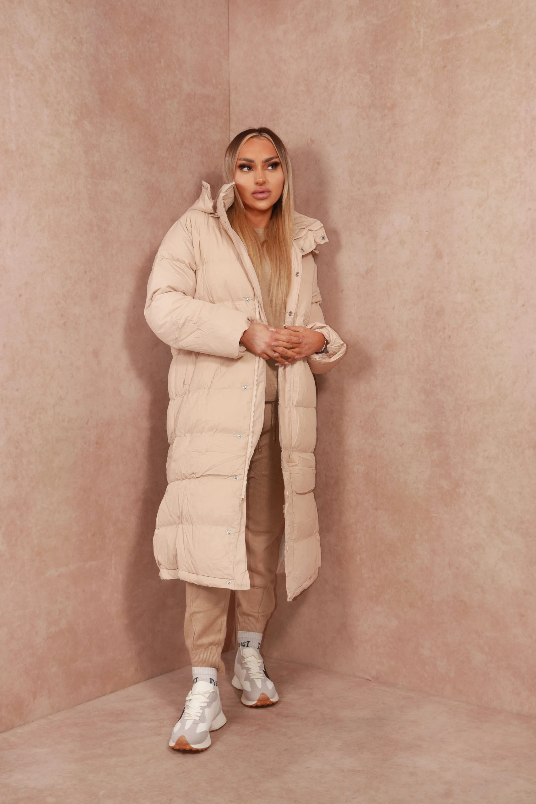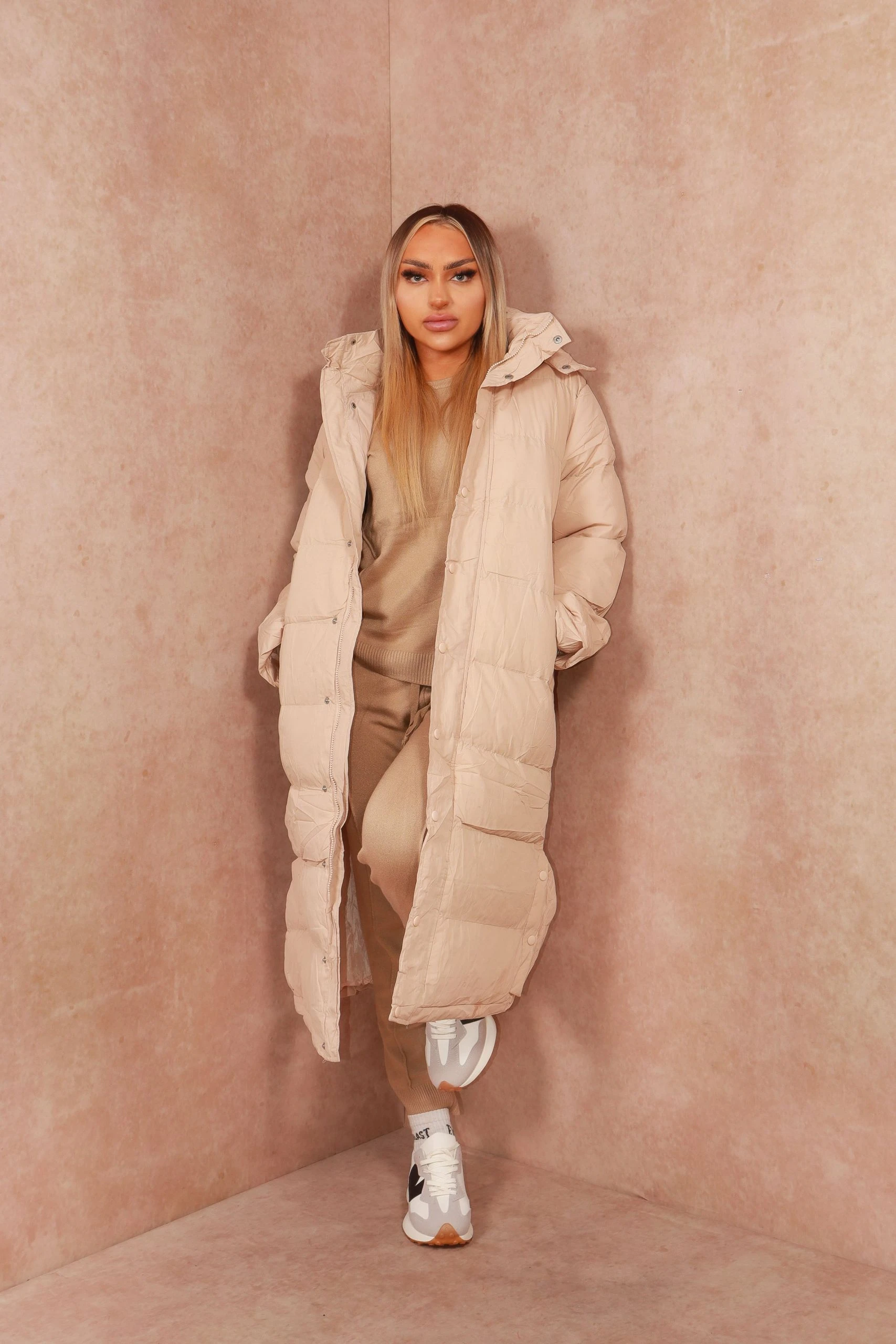 Stay wrapped up this season with our must have oversized puffer jacket babe. Featuring an oversized long-line puffer fit, and pocket detailing we are obsessed. Style with our lounge sets and new in chunky dad trainers for a look we love.