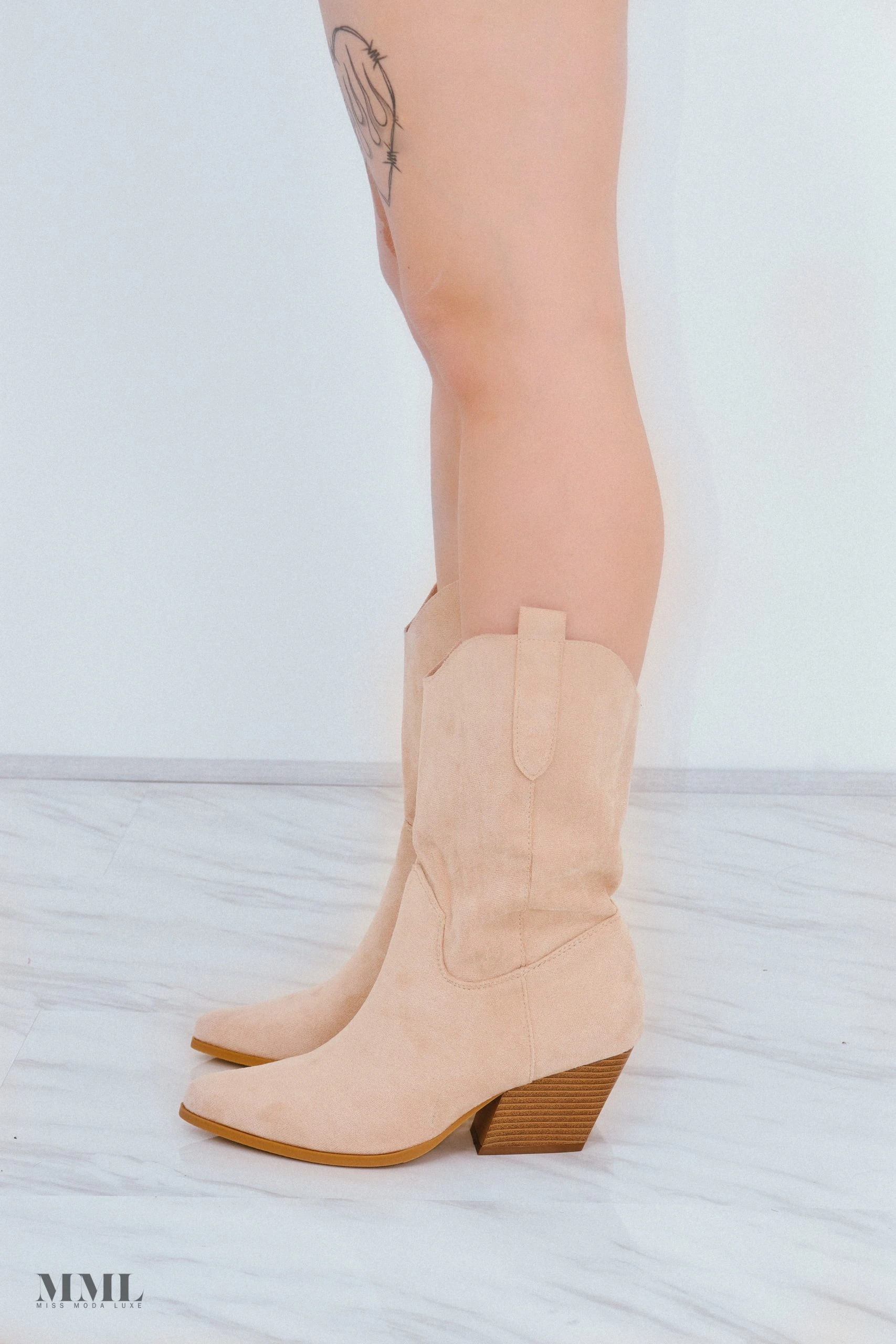Make a statement with our Beige Mid Calf High Classic Cowboy Boot. This sleek boot is perfect for any occasion, whether you’re going out to dinner or dressing up for the office, this is a must have.