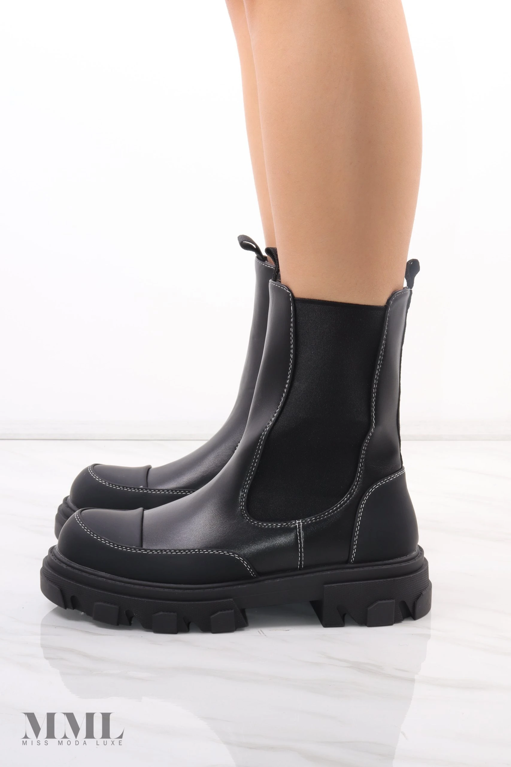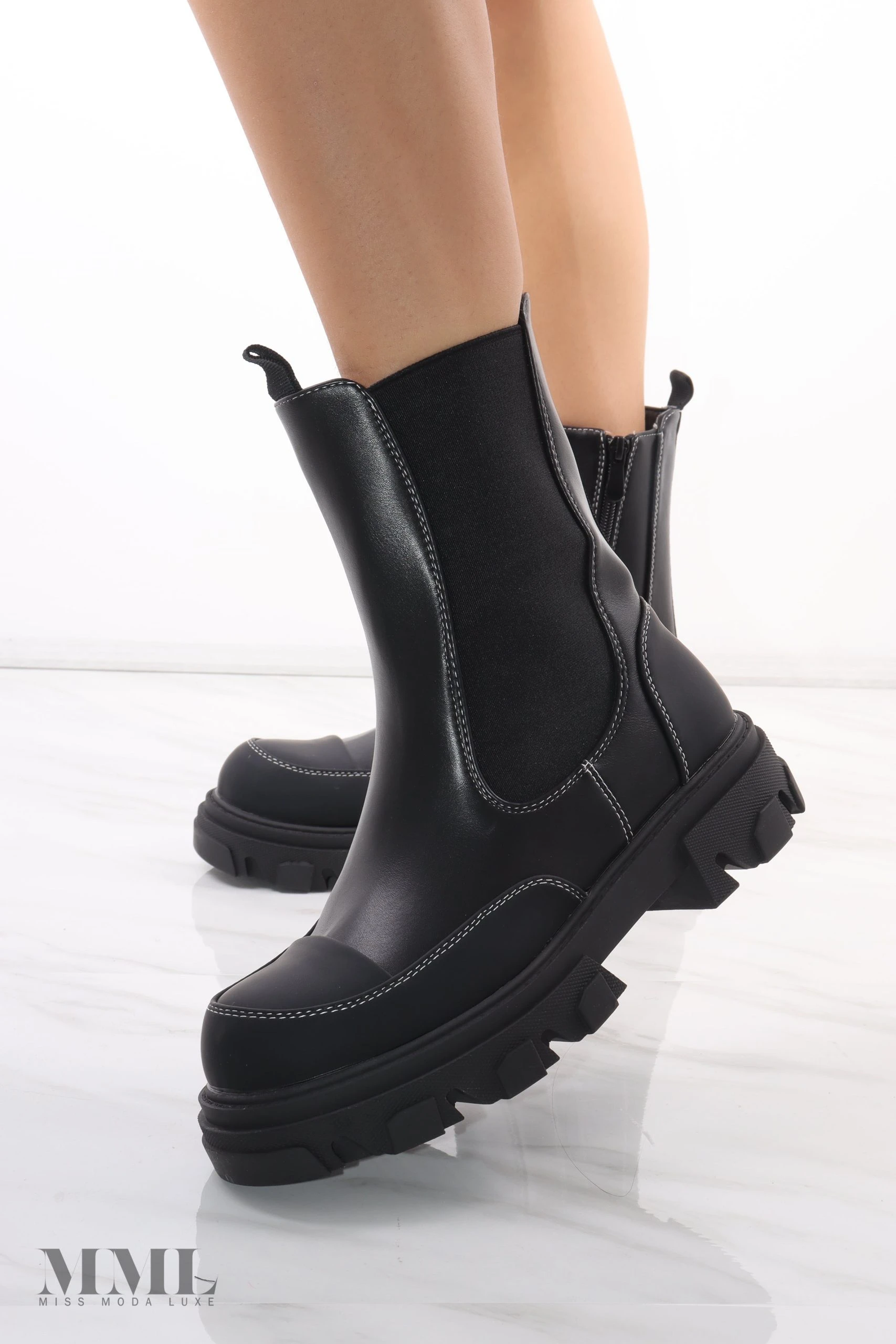 Boots season is back! These chunky boots feature pull tabs for easy entry, elastic inserts and a short fur lining.