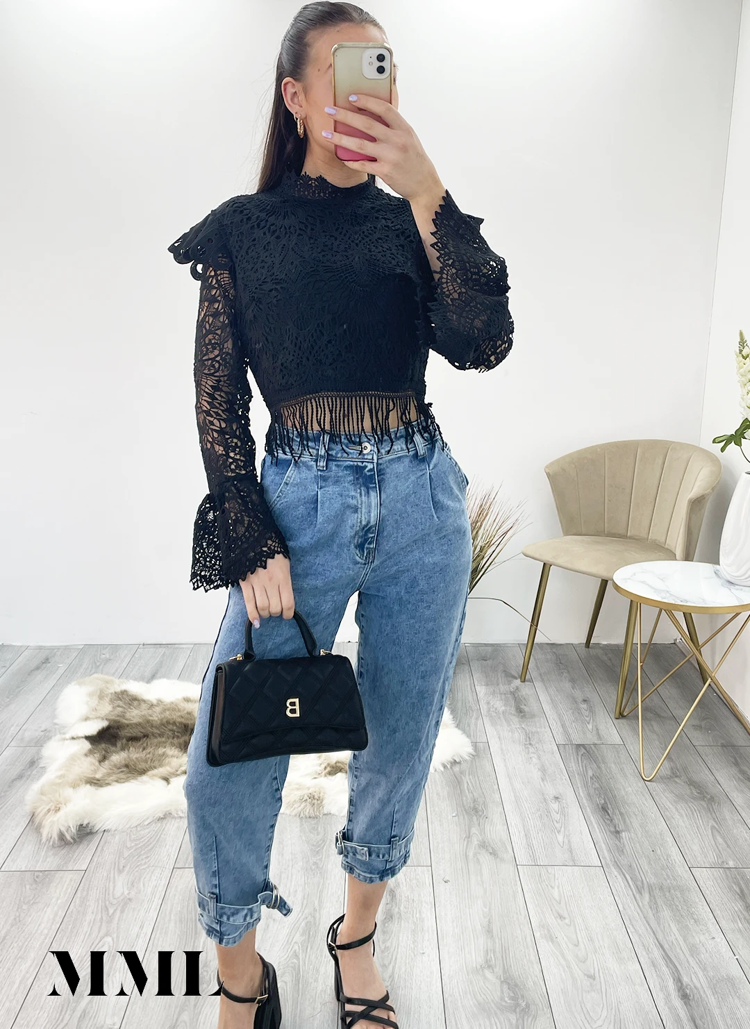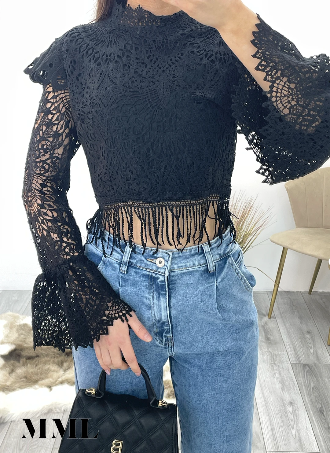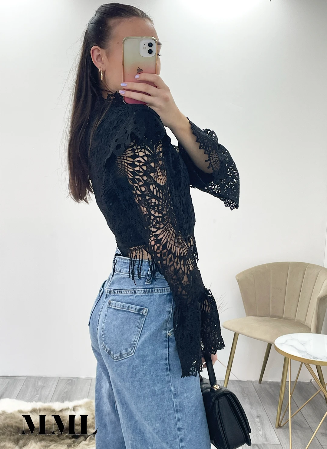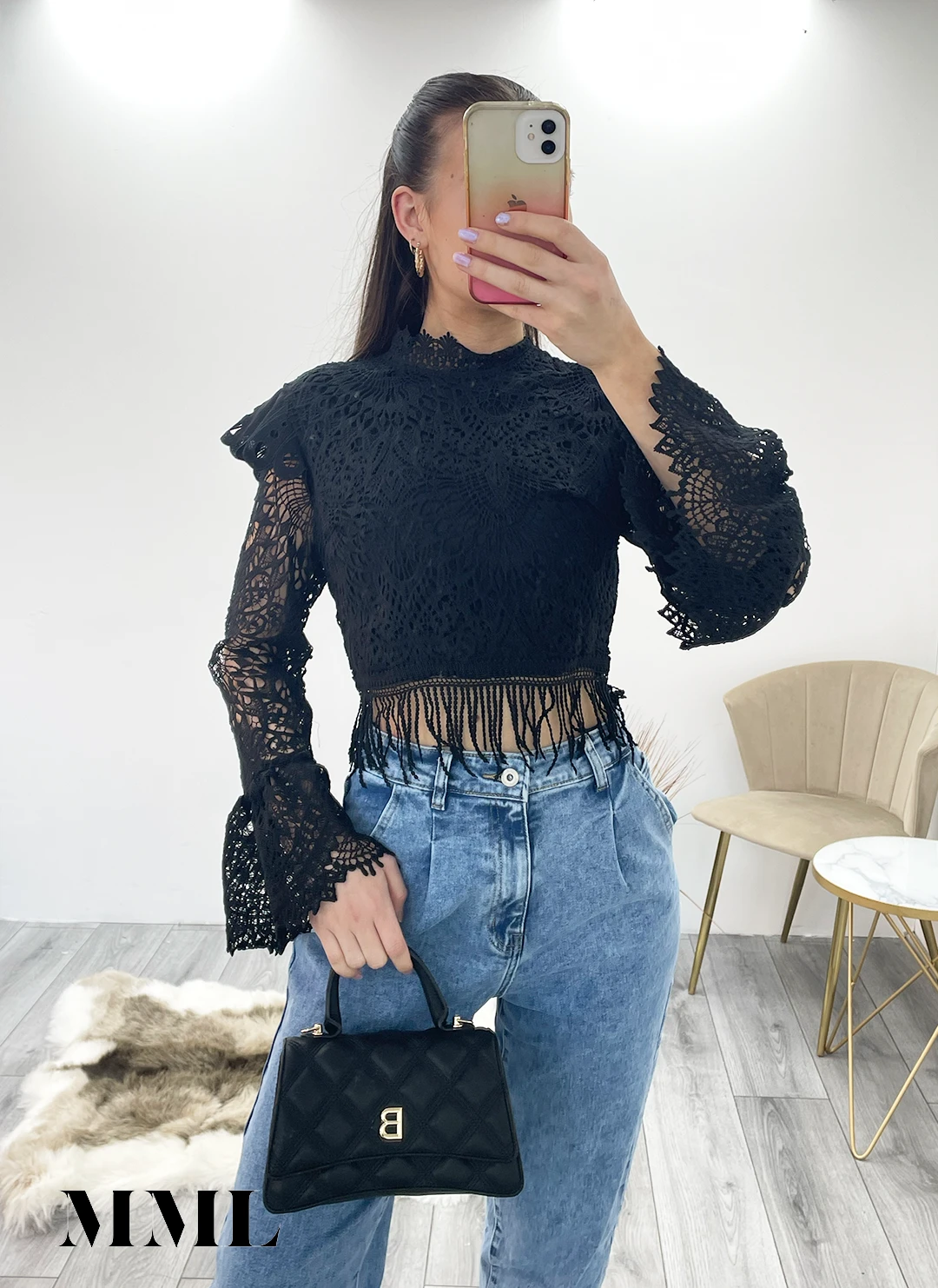 Miss Moda Luxe Black Crochet Lace High Neck Top