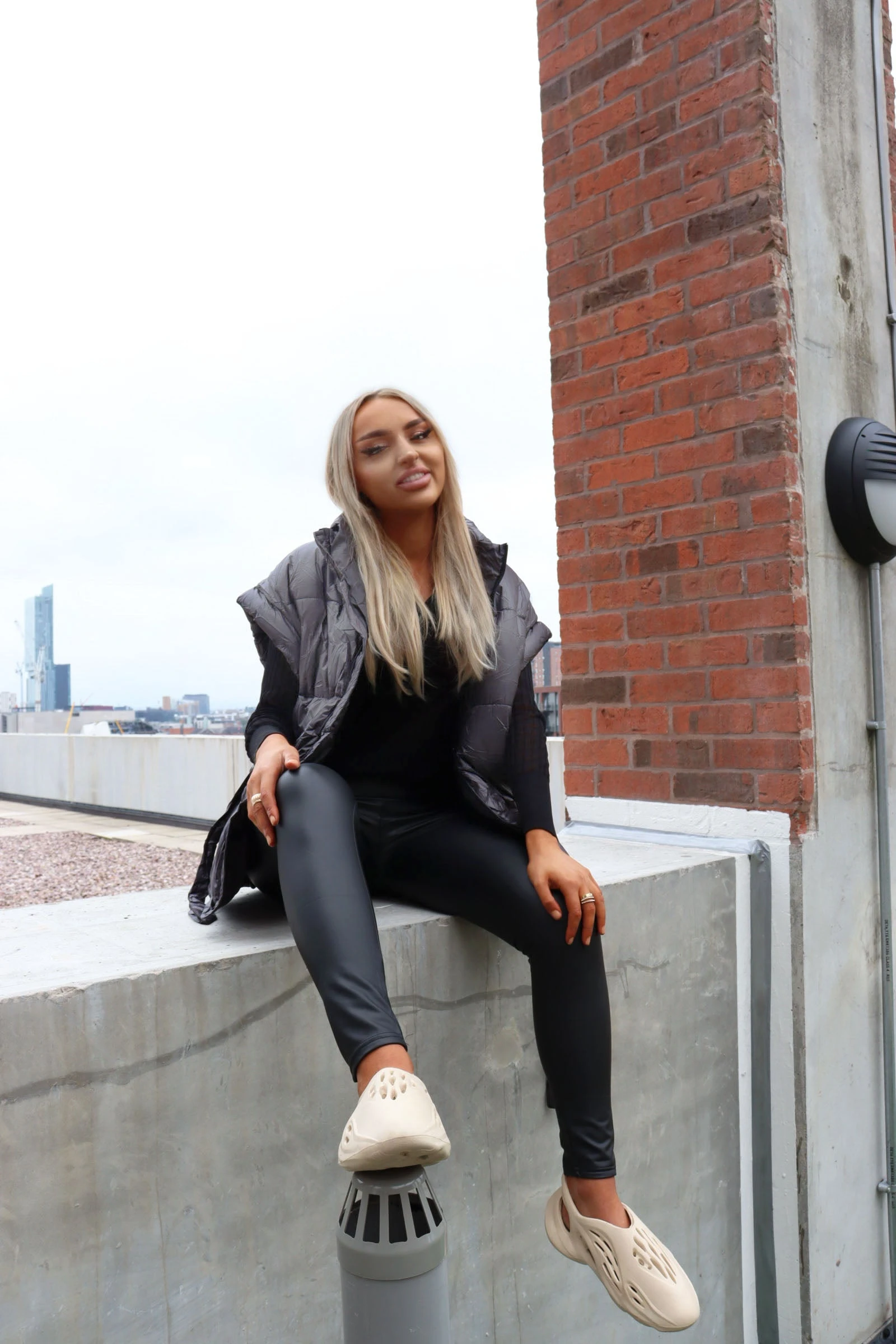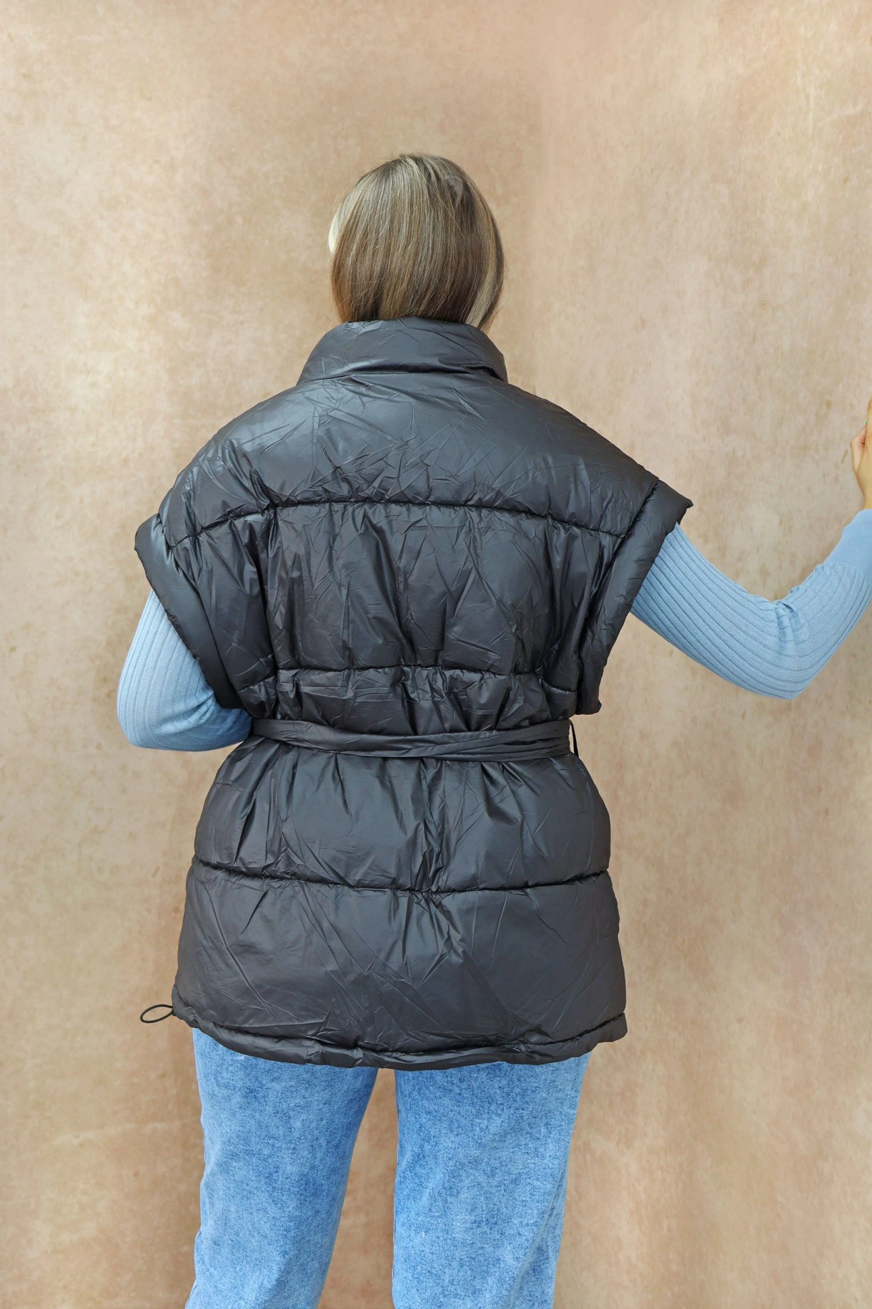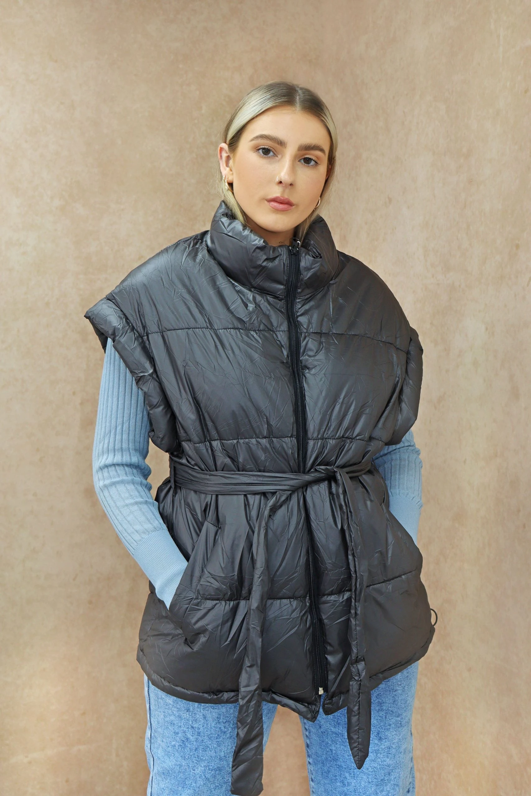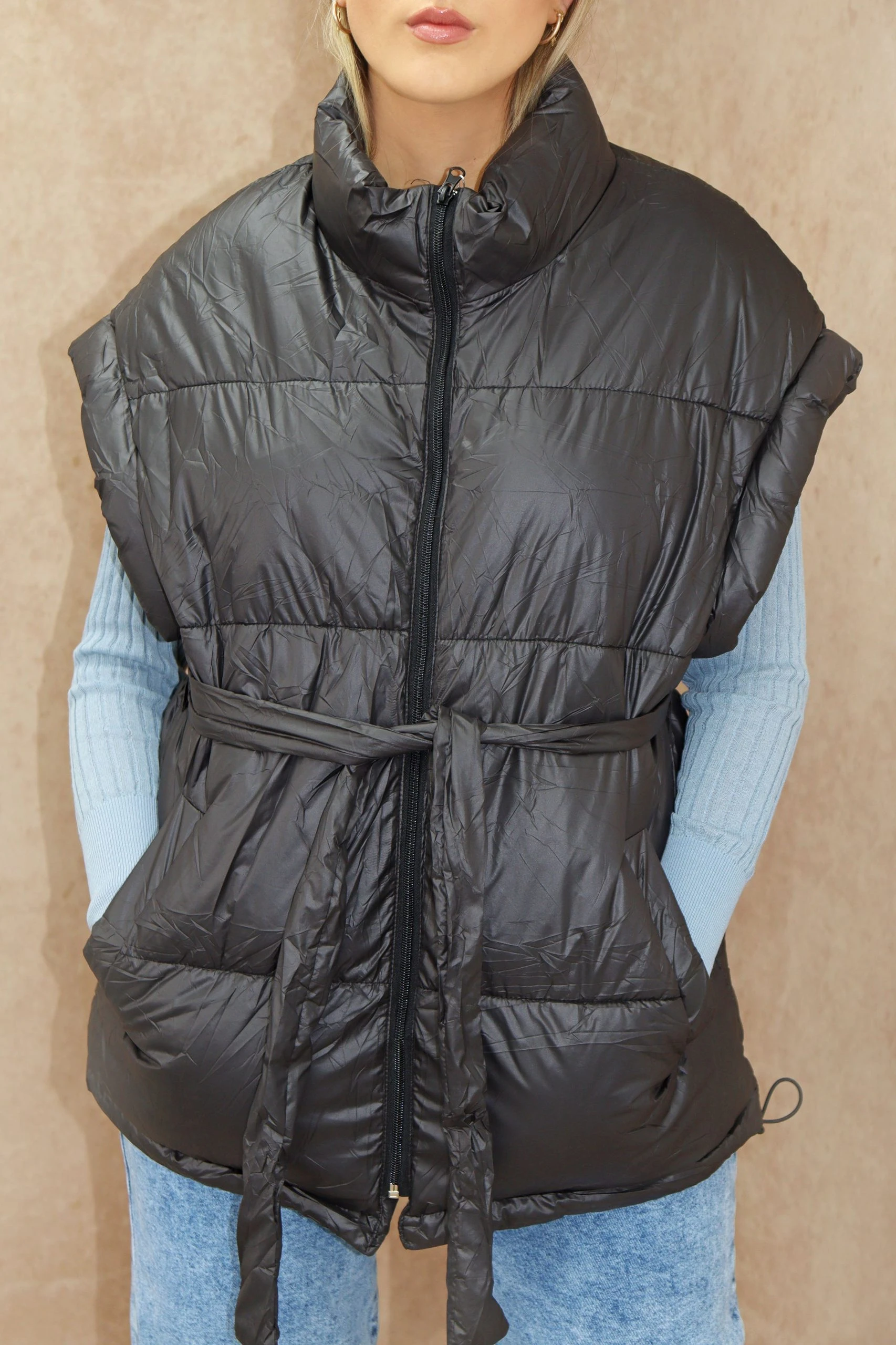 Layer up your new season look with this beige cuffed tie gilet. Featuring a puffer material, large pockets and a quarter length its the perfect addition to your A/W wardrobe. Pair this with a matching two piece and chunky boot for a day out with the girls.