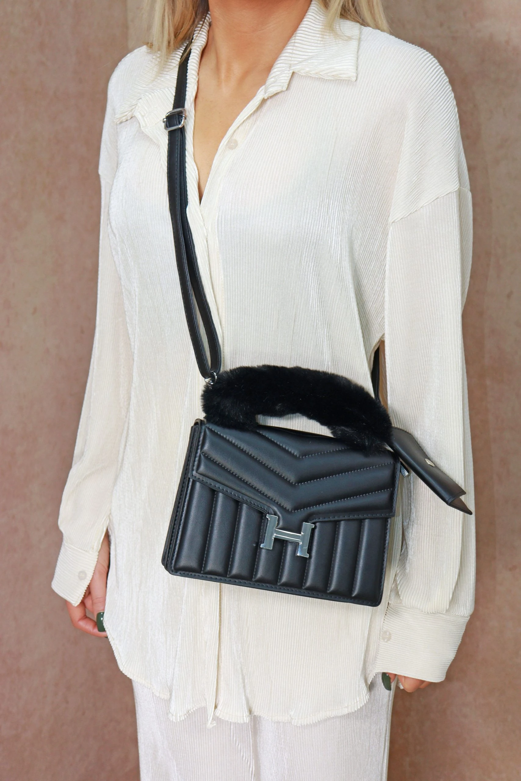 We are obsessing over this blogger must-have. Featuring a thick quilted material, faux fur handle detailing and a cross-body strap this bag is perfect for every occasion.