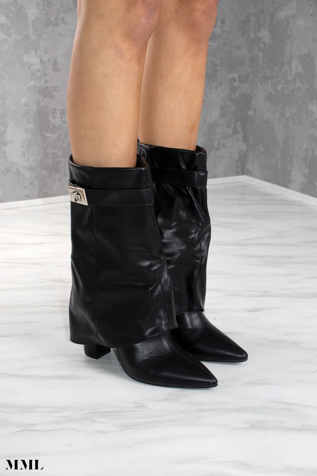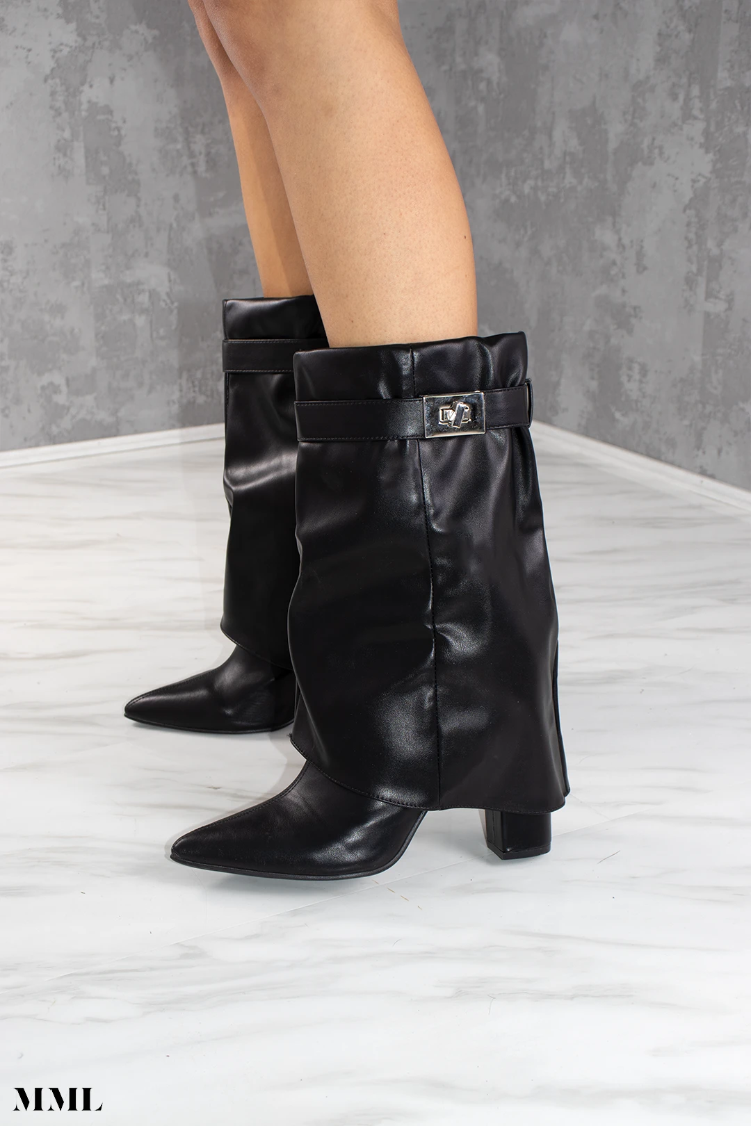 The famous shark boots sister: Mid calf shark boot. A glamorous play on the cowboy boot trend. Featuring a luxury faux leather material, mid calf height and block heel – we are obsessed.