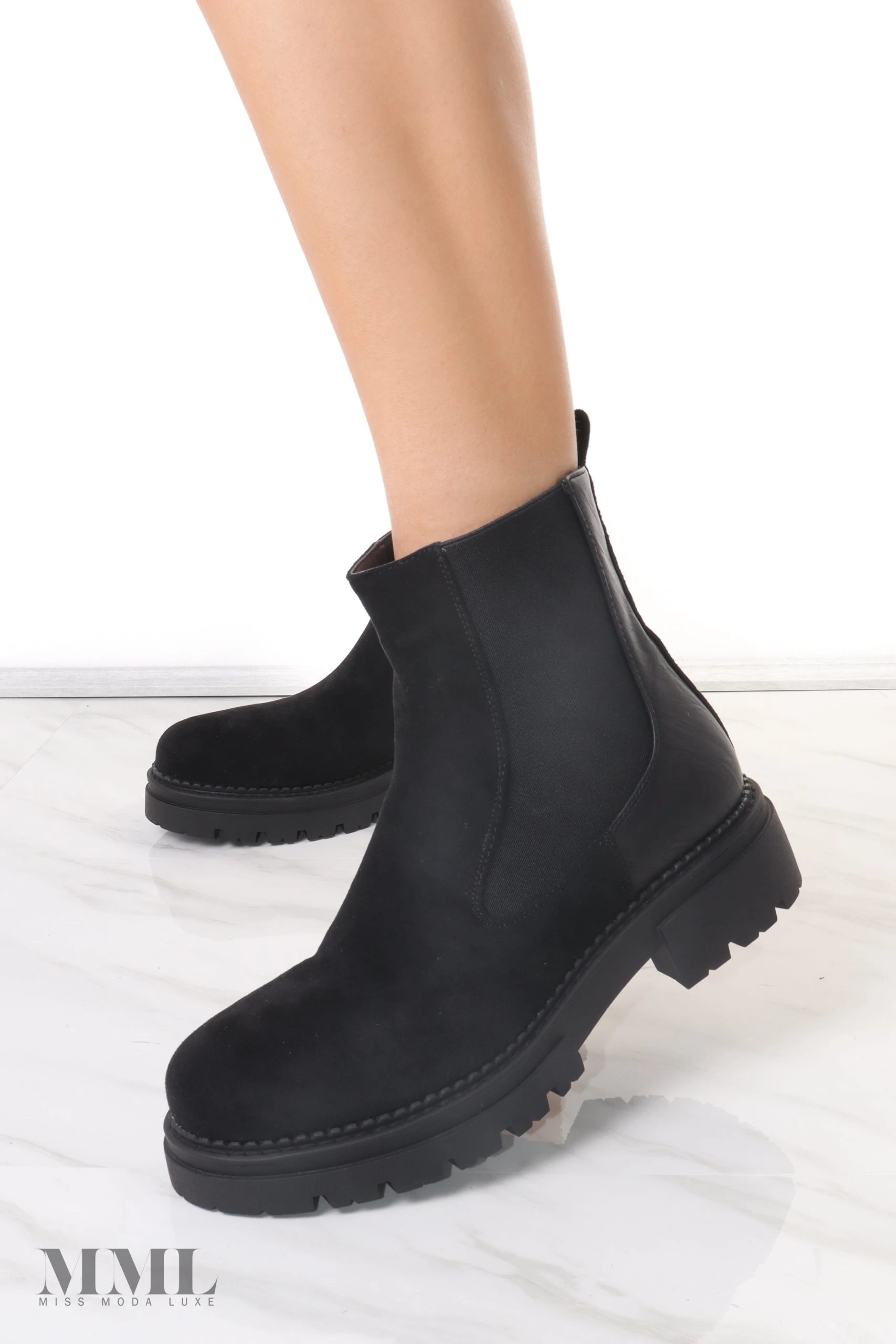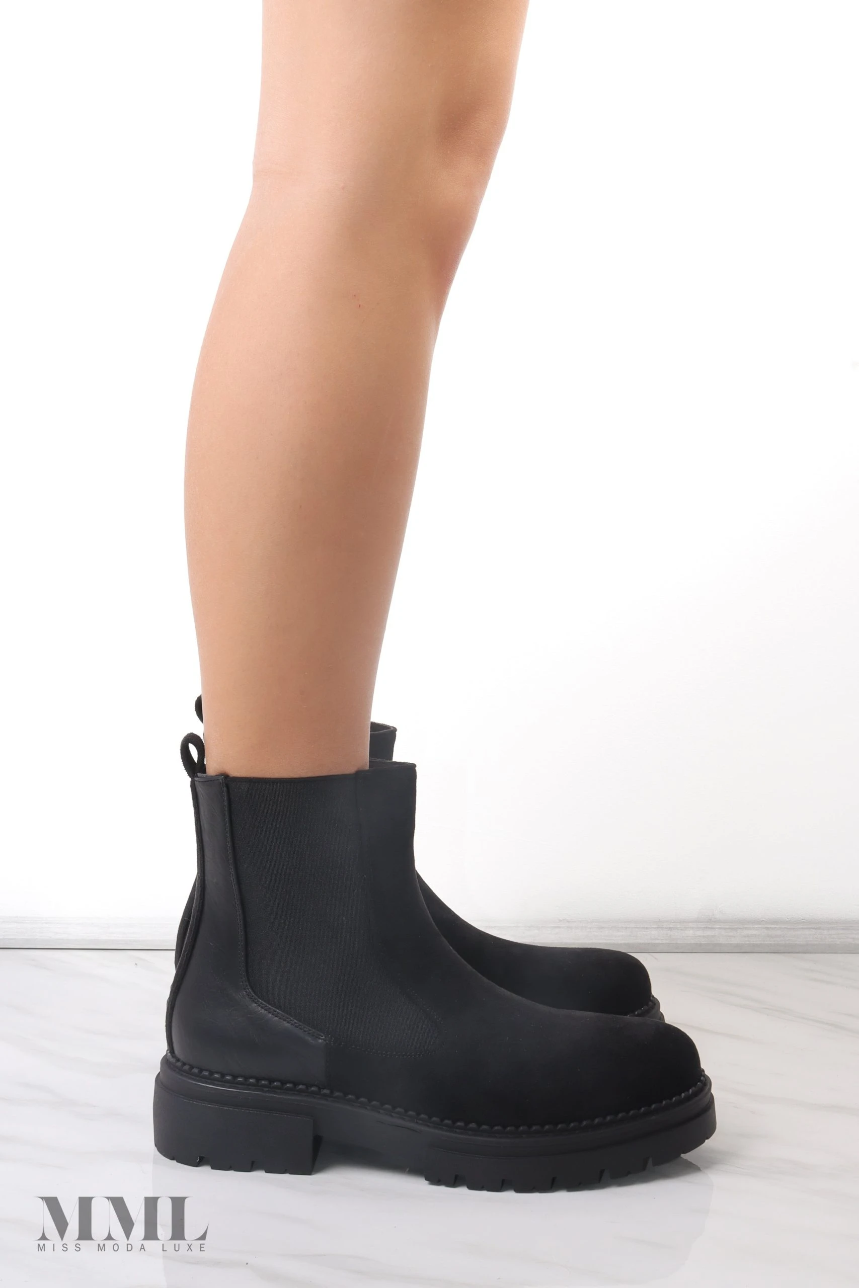 Wardrobe essential Chelsea boot. Featuring a chunky soul and a side zip fastening. Contrasting stitch detail. Some stretch around the ankle.