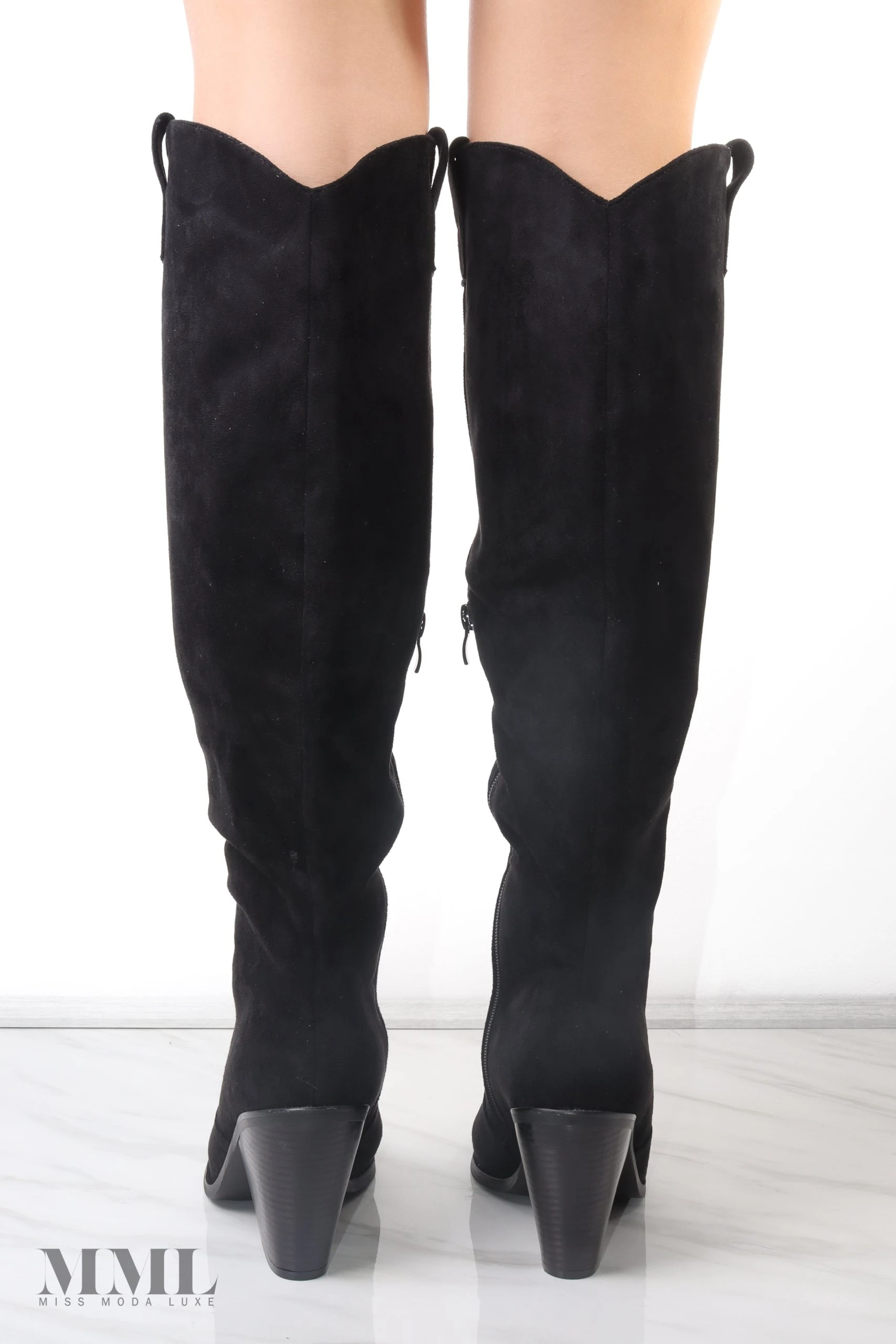 Get on trend with this seasons must have Knee High Faux Suede Cowboy Boots in a brand new style. These luxury western style boots are a must have for every wardrobe. Featuring a thick faux suede material, chunky heel and toe cap – we LOVE.
