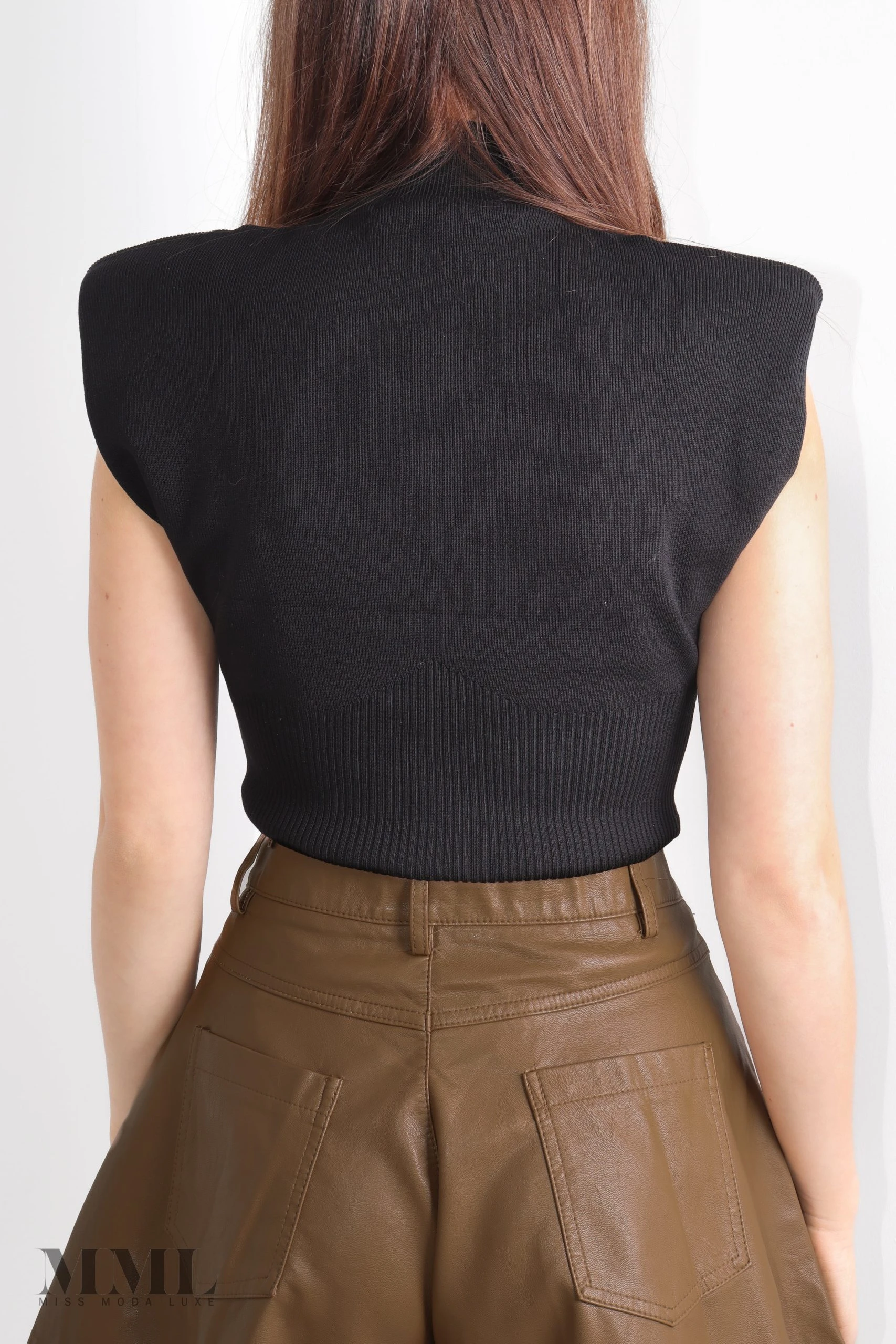 Step up your look with this A/W collection top. Featuring a stretch, rib material with shoulder pads. This top features a chunky rib around the bust for a highly feminine appearance.
