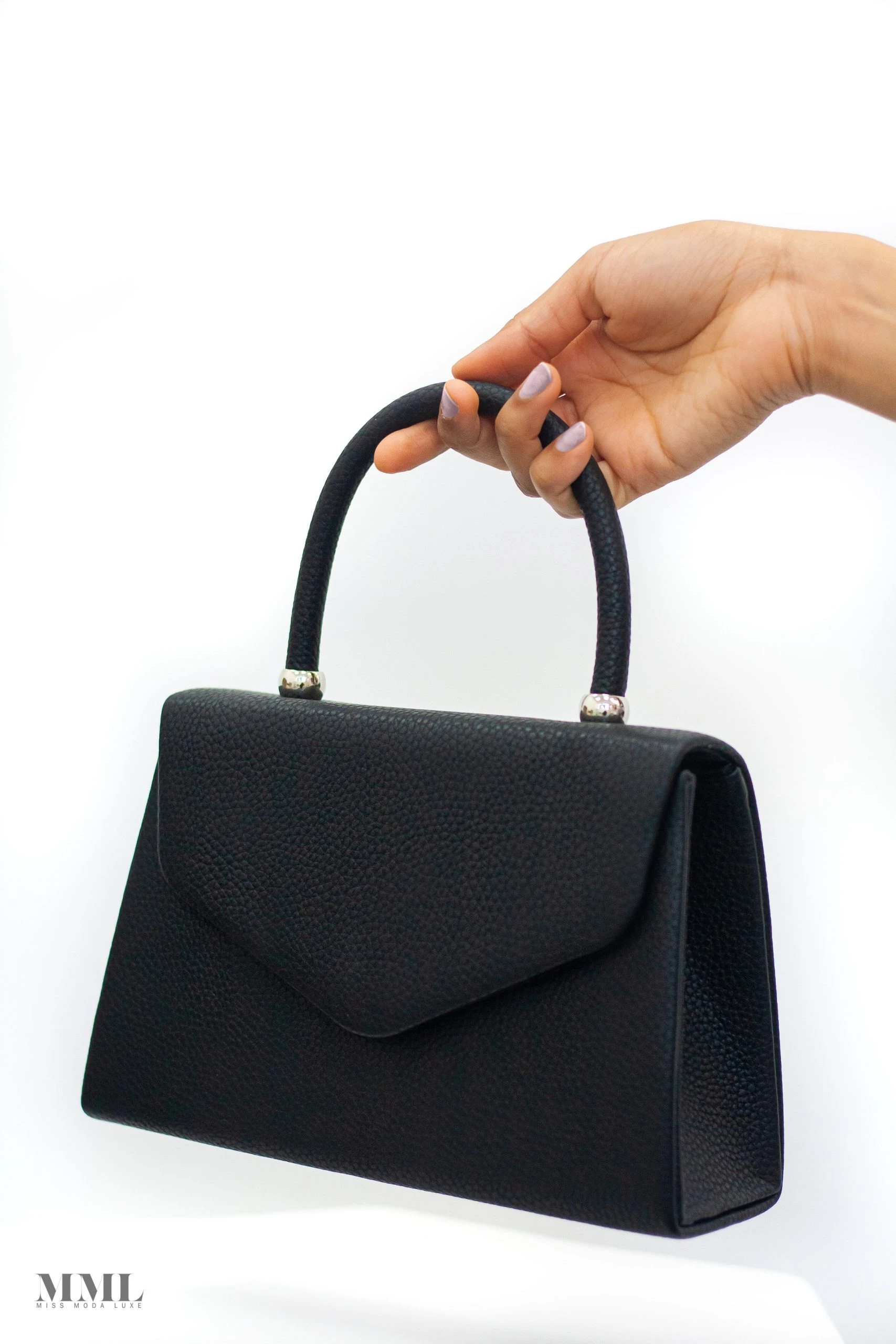 Miss Moda Luxe Black Soft Faux Leather Envelope Handbag