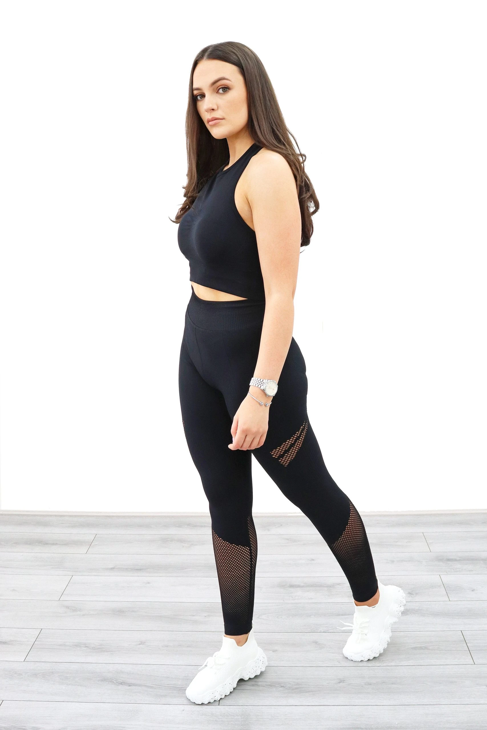 Active wear for everyday wear is always a go to. This set features a racer style cropped top and matching leggings with an elasticated waistband, mesh paneling and lift and shape detailing. Available in multiple colours.