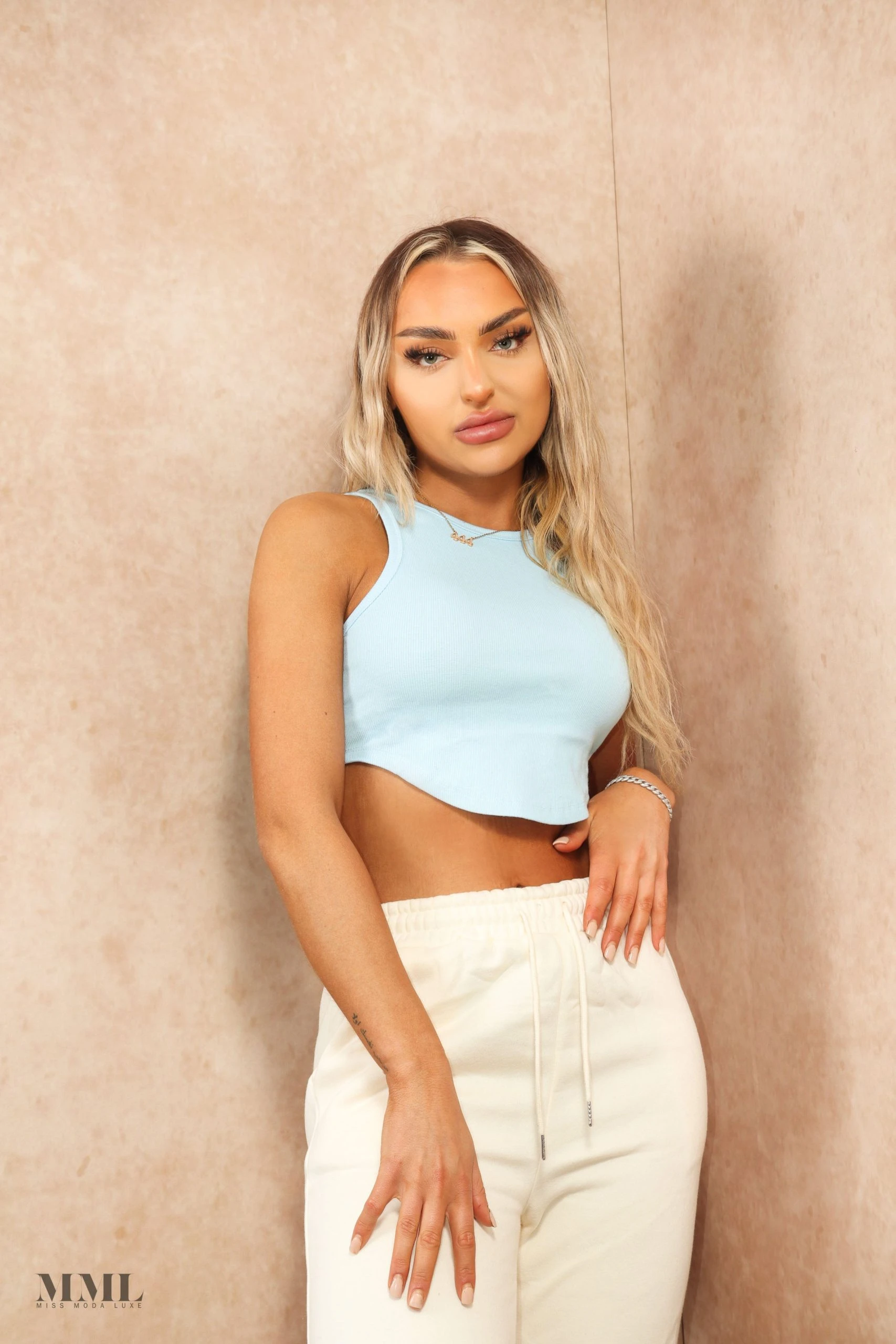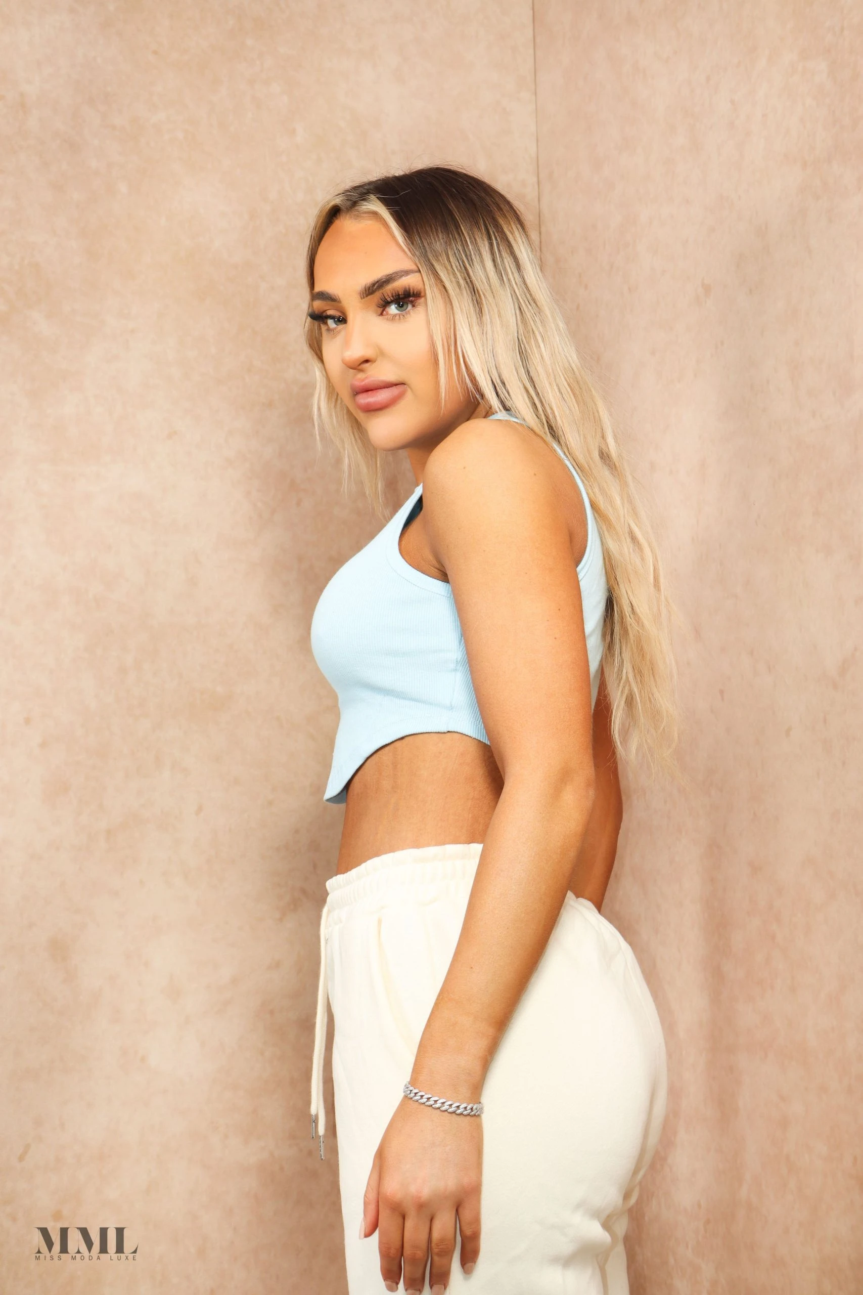 Miss Moda Luxe Blue Basic Luxury Ribbed Racer Vest Crop Top