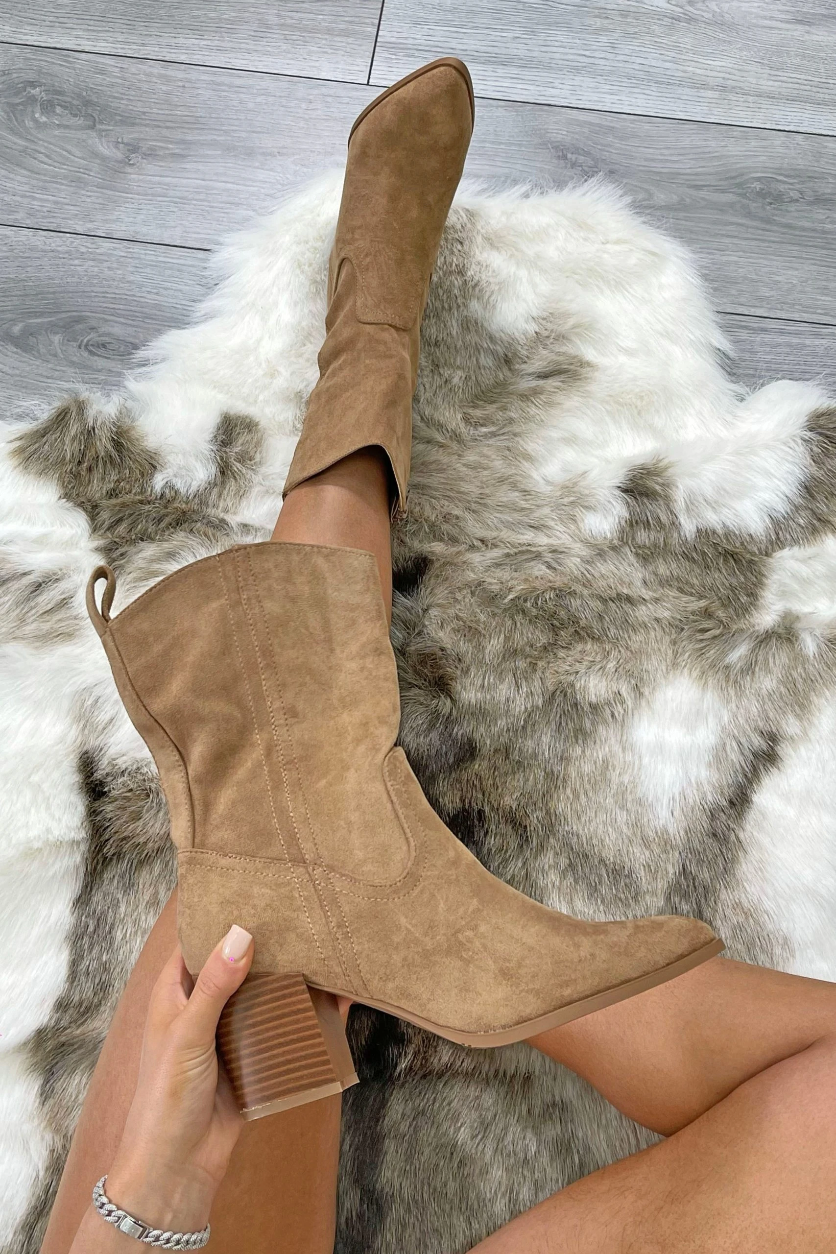 Step up your shoe game with these must have classic faux suede cowboy boots babe. Featuring a faux suede material, pointed toe and heeled detailing what’s not to love? Style with our classic dresses and blazers for a spring look we love.