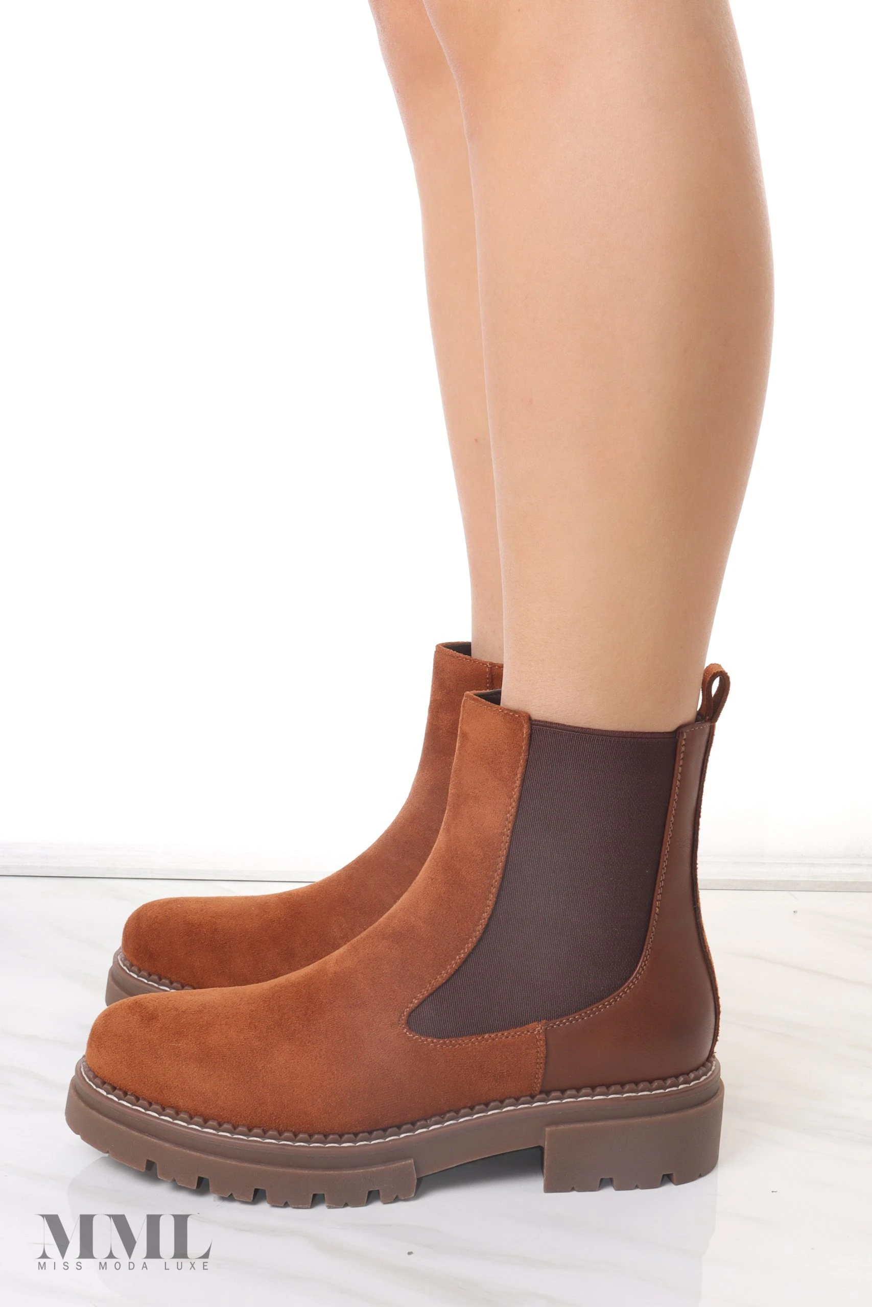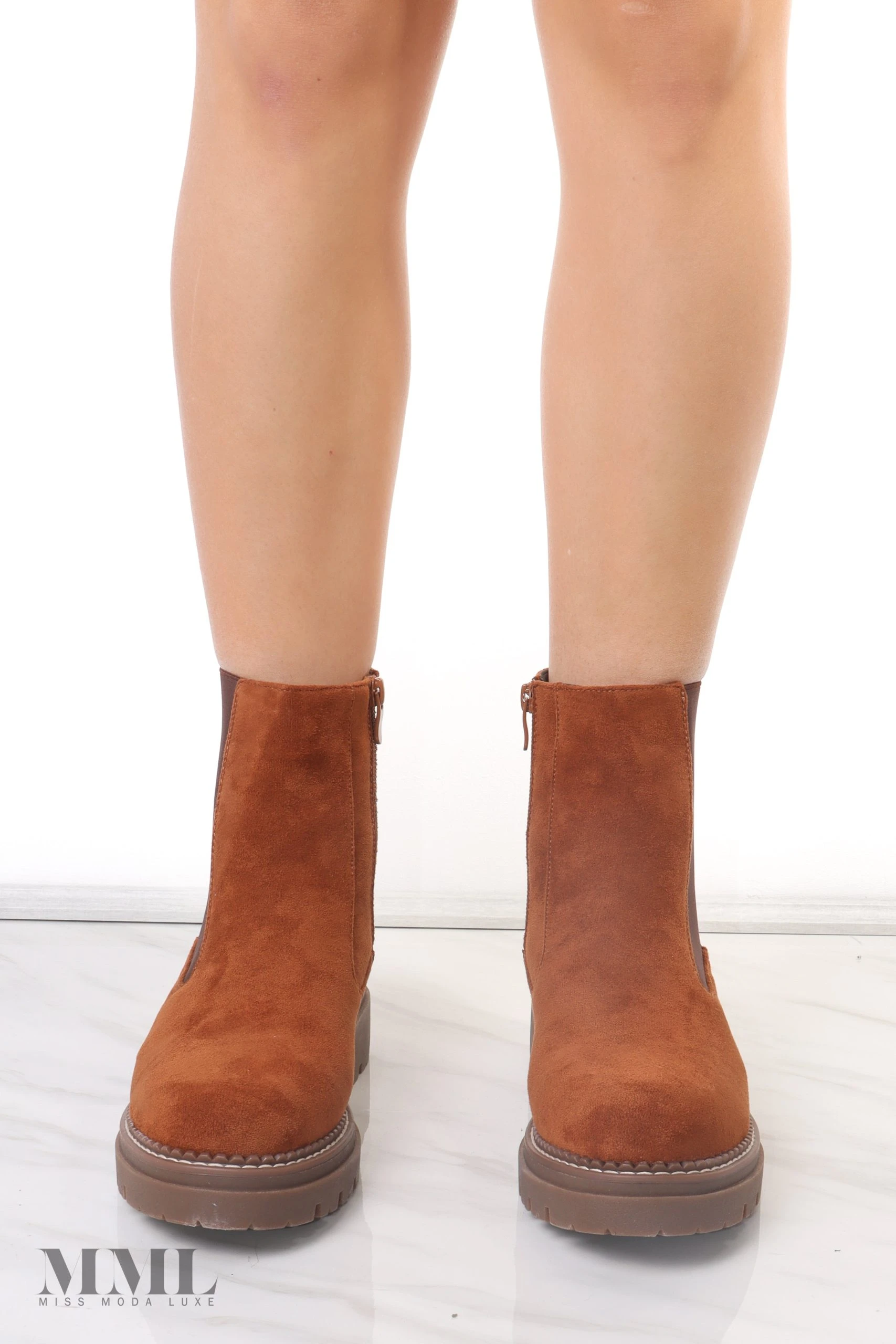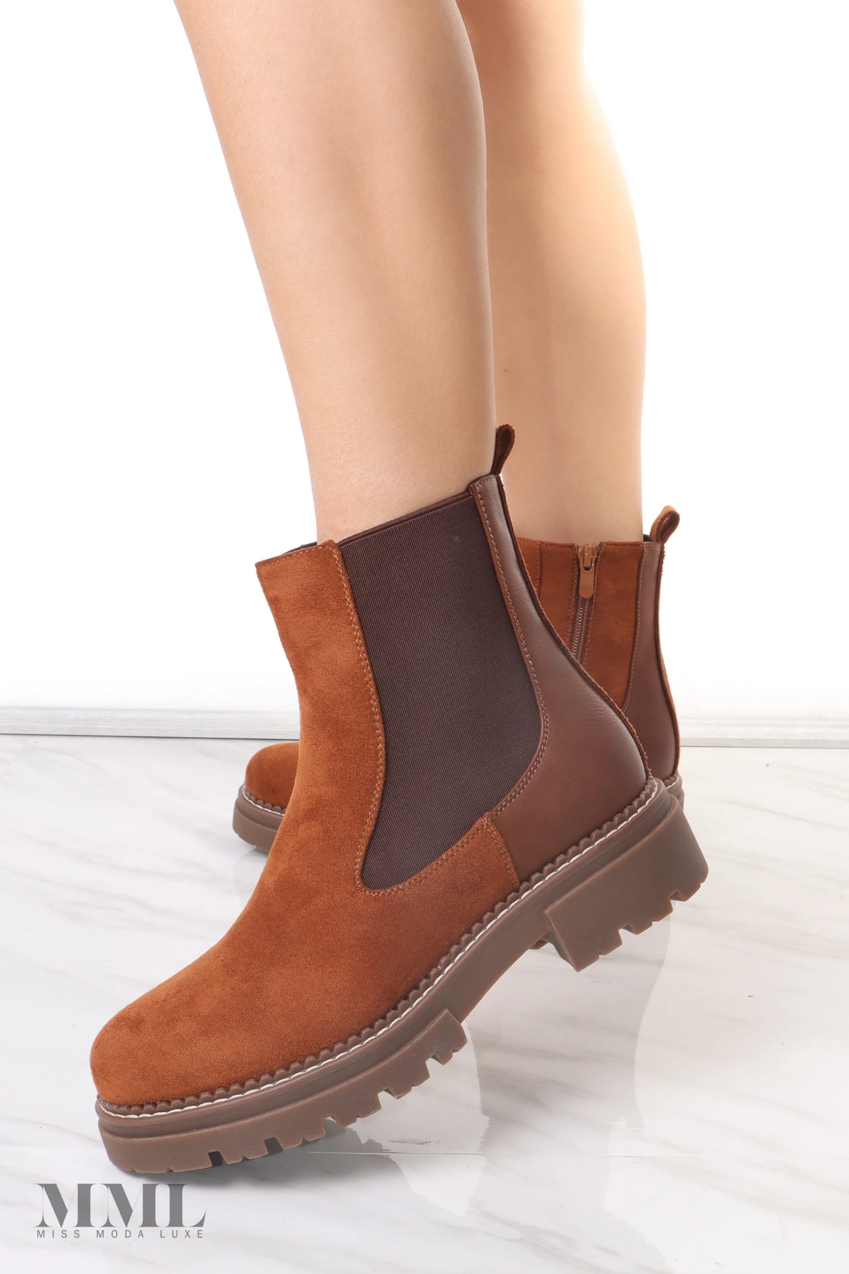Wardrobe essential Chelsea boot. Featuring a chunky soul and a side zip fastening. Contrasting stitch detail. Some stretch around the ankle.