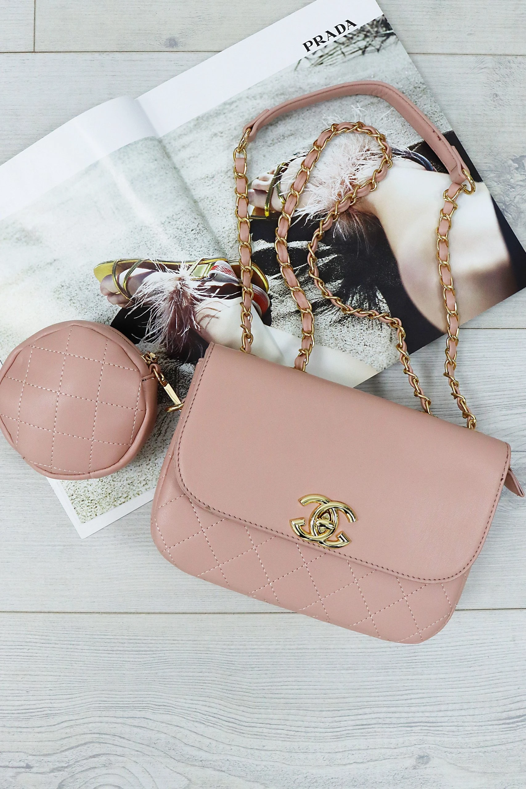 Our ‘Cece’ bag is a must have addition to anyone’s accessory collection. Featuring cross stitched vegan leather material, gold hardware, a flap over design and an added matching round purse pocket. This bag can be worn across the body, or even on the shoulder due to its adjustable gold threaded, chain strap. Available in multiple colours.