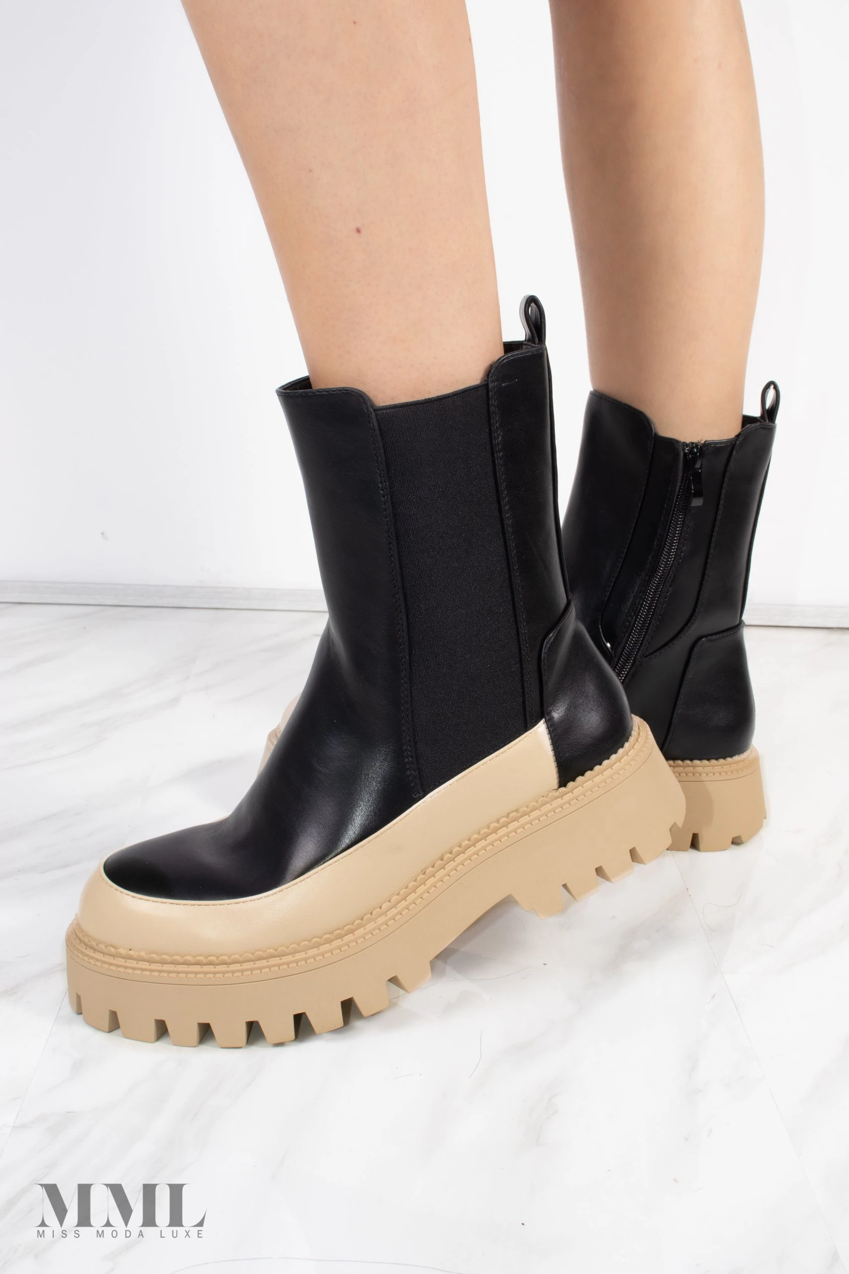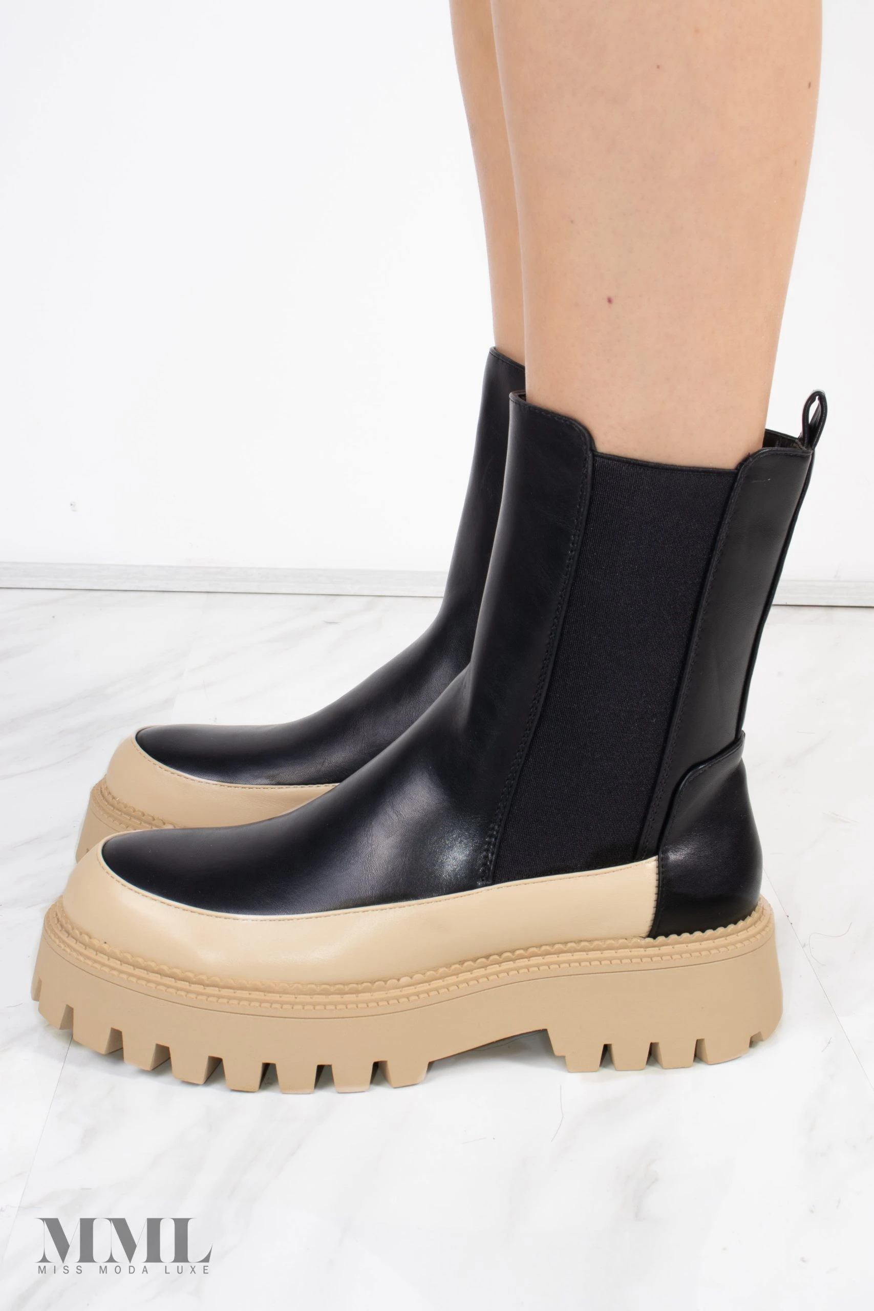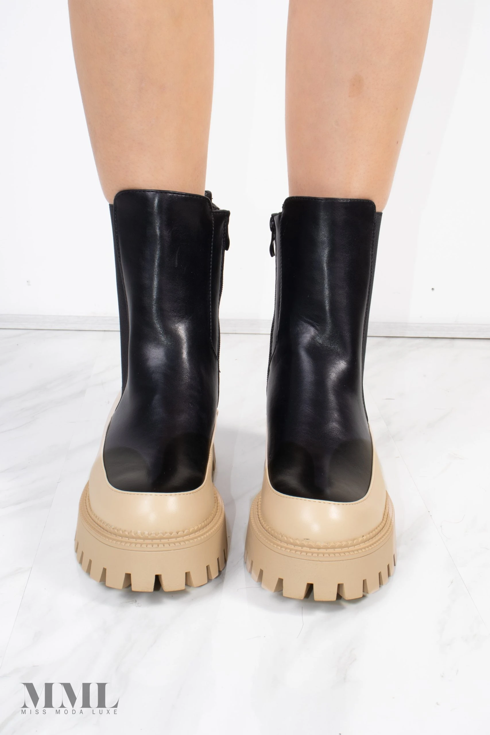 These ladies chelsea ankle boots are a must for those off-duty days and beyond. Featuring a black PU material with elasticated panels and a chunky sole, we are obsessed. Team these with any outfit to complete the look.