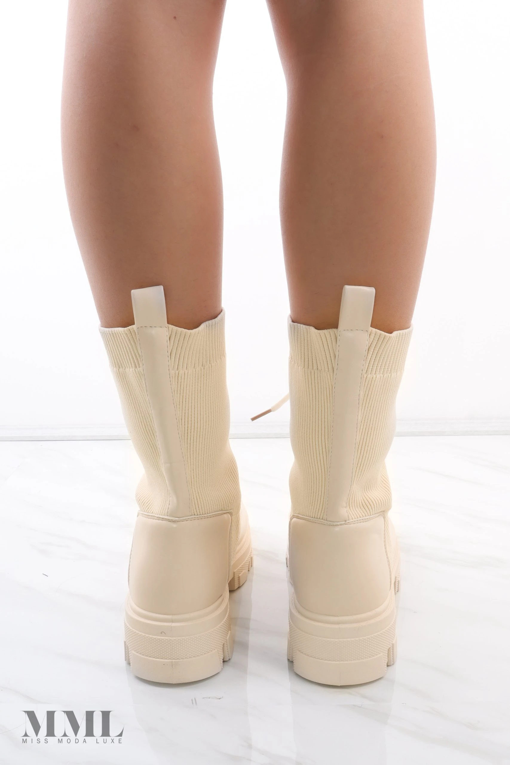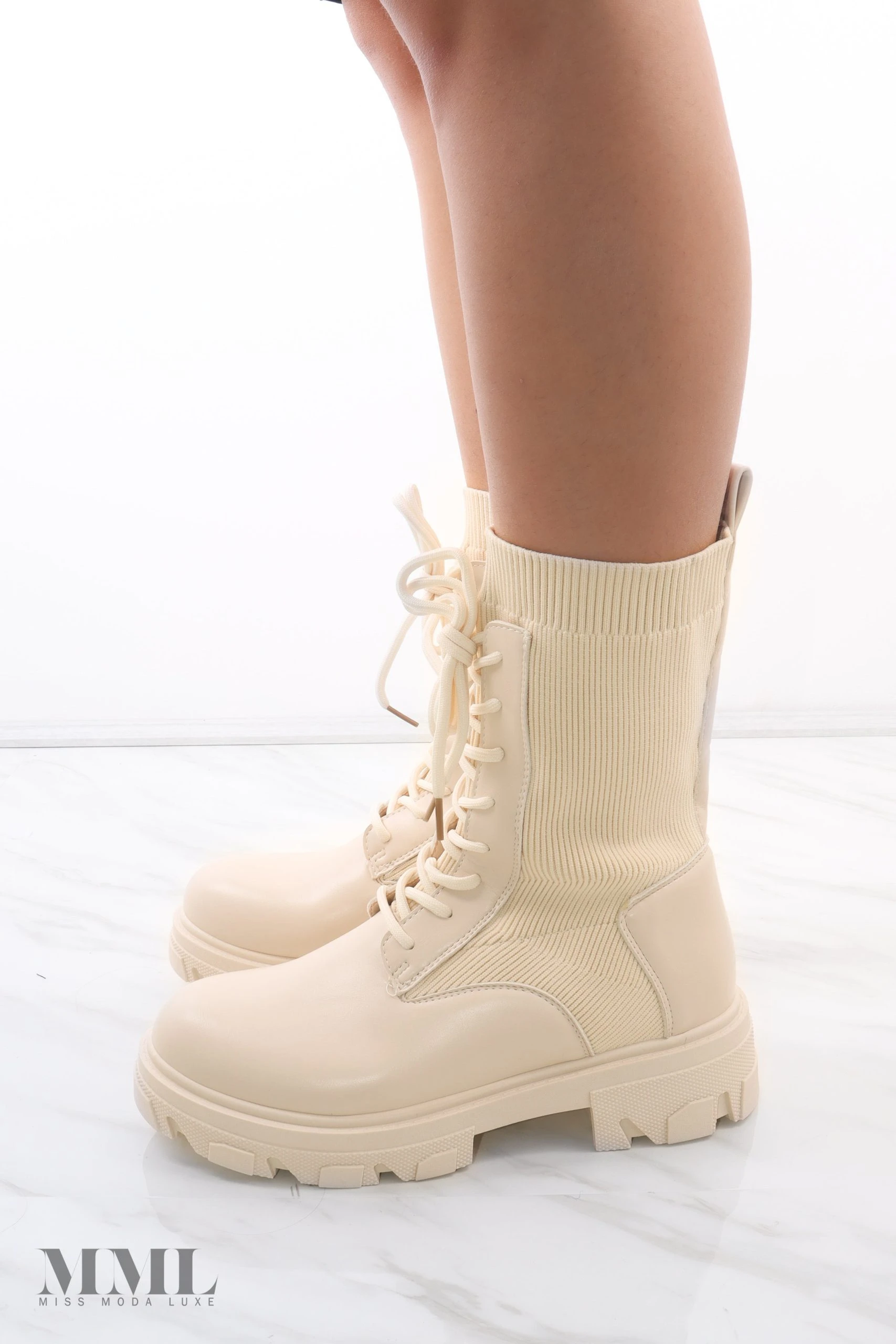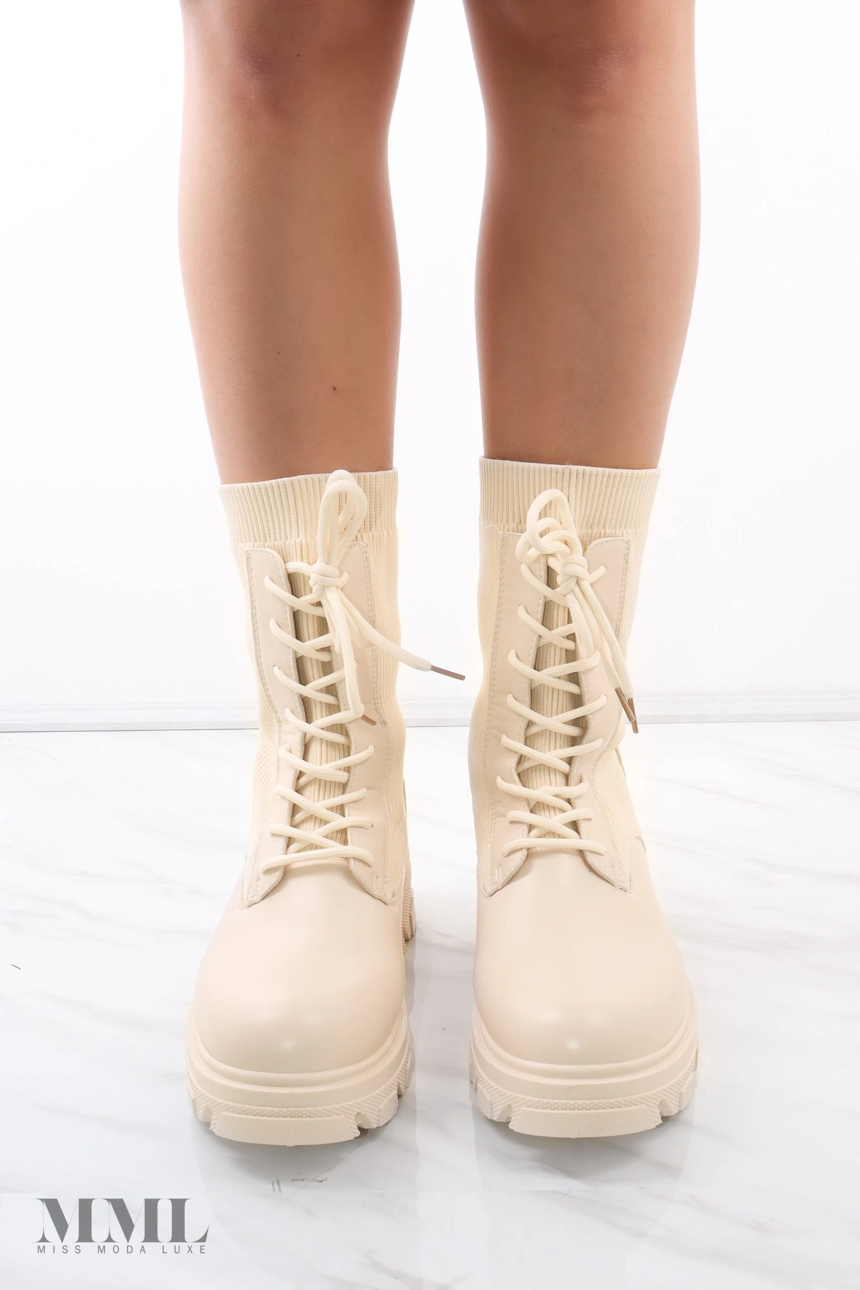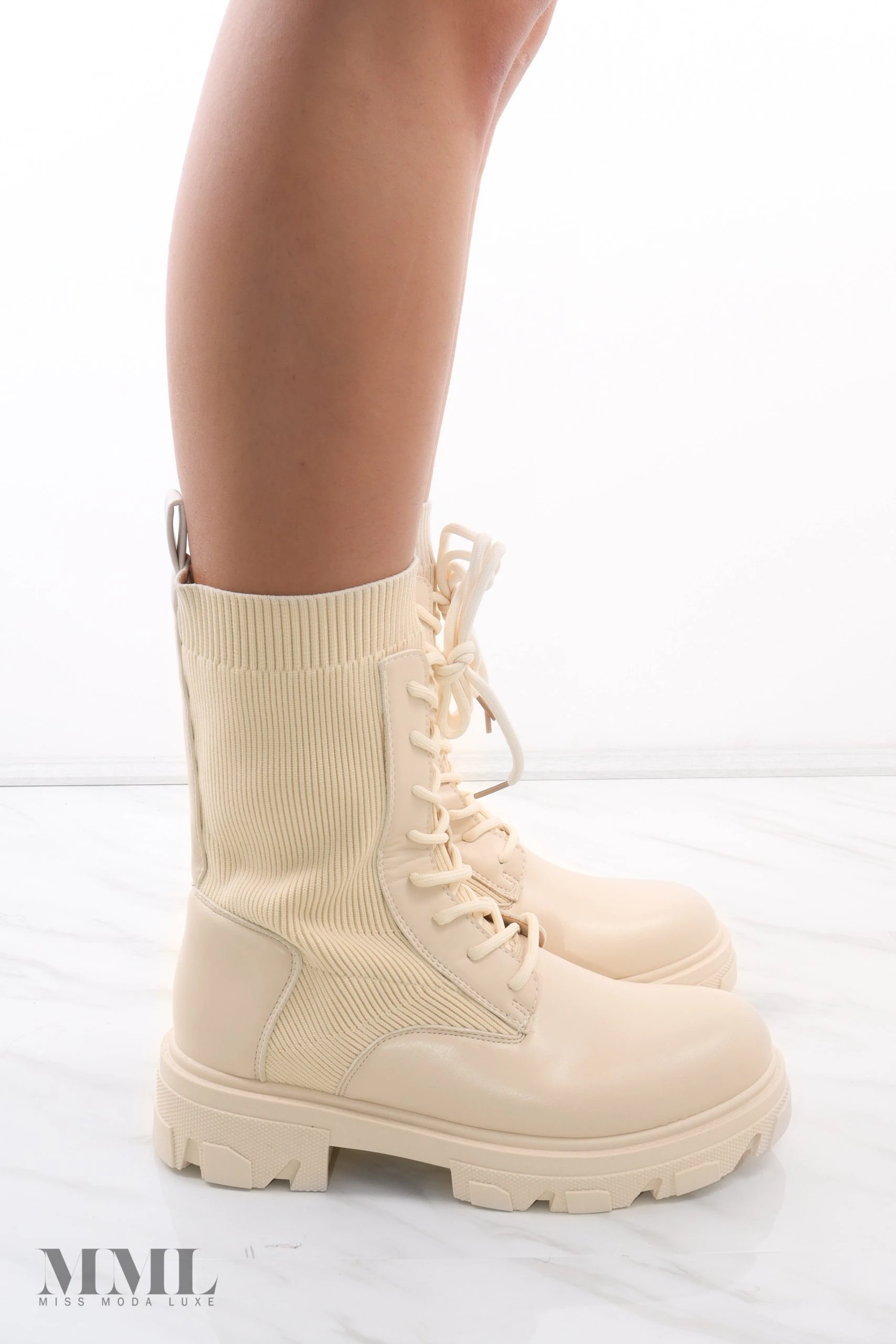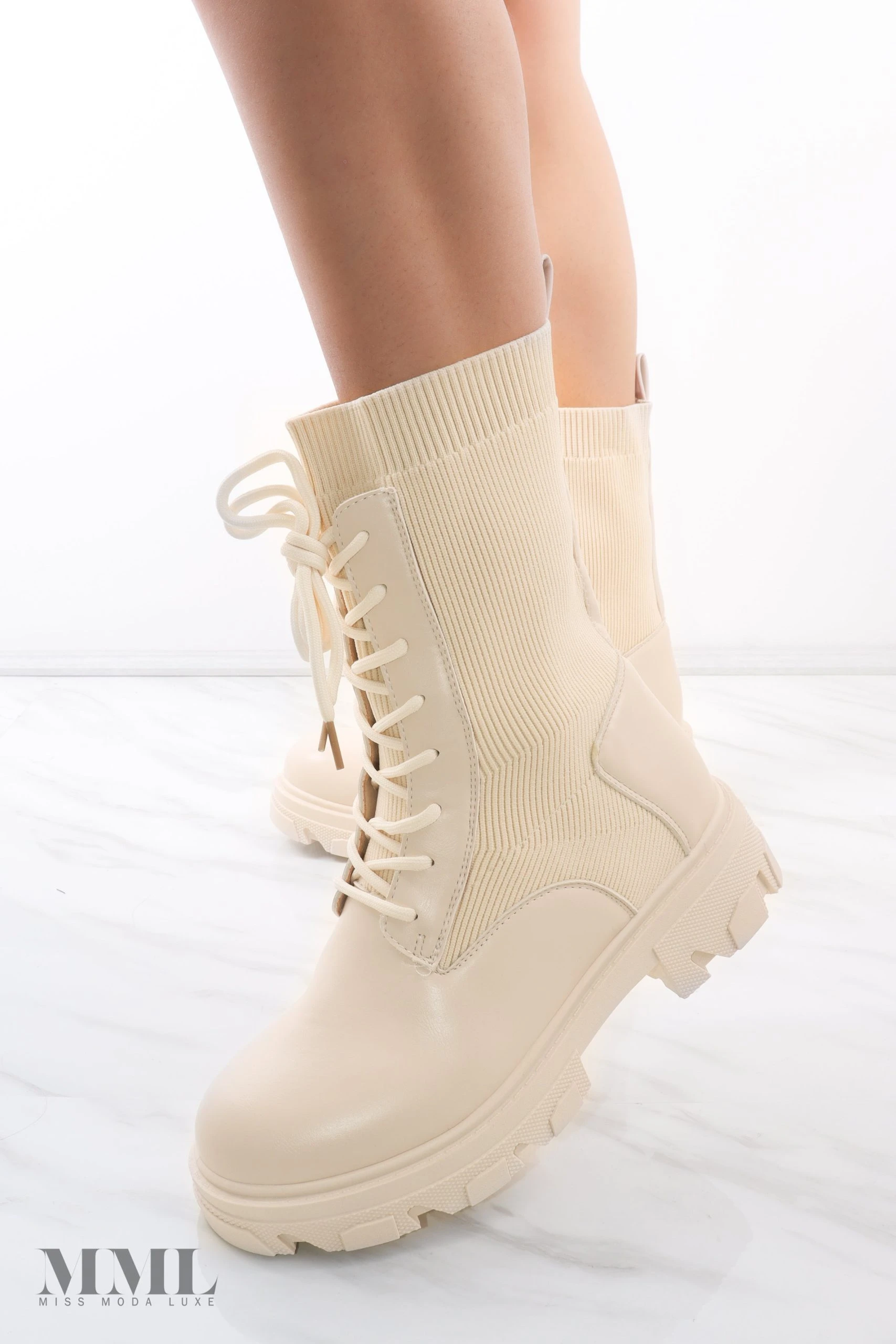 We love these must have chunky sock boots. They are the perfect Autumn boots, as they feature a high ankle length and a stretch fabric that will keep your feet toasty and extra comfortable. These boots fasten with a lace up front and have pull tabs for easy access.