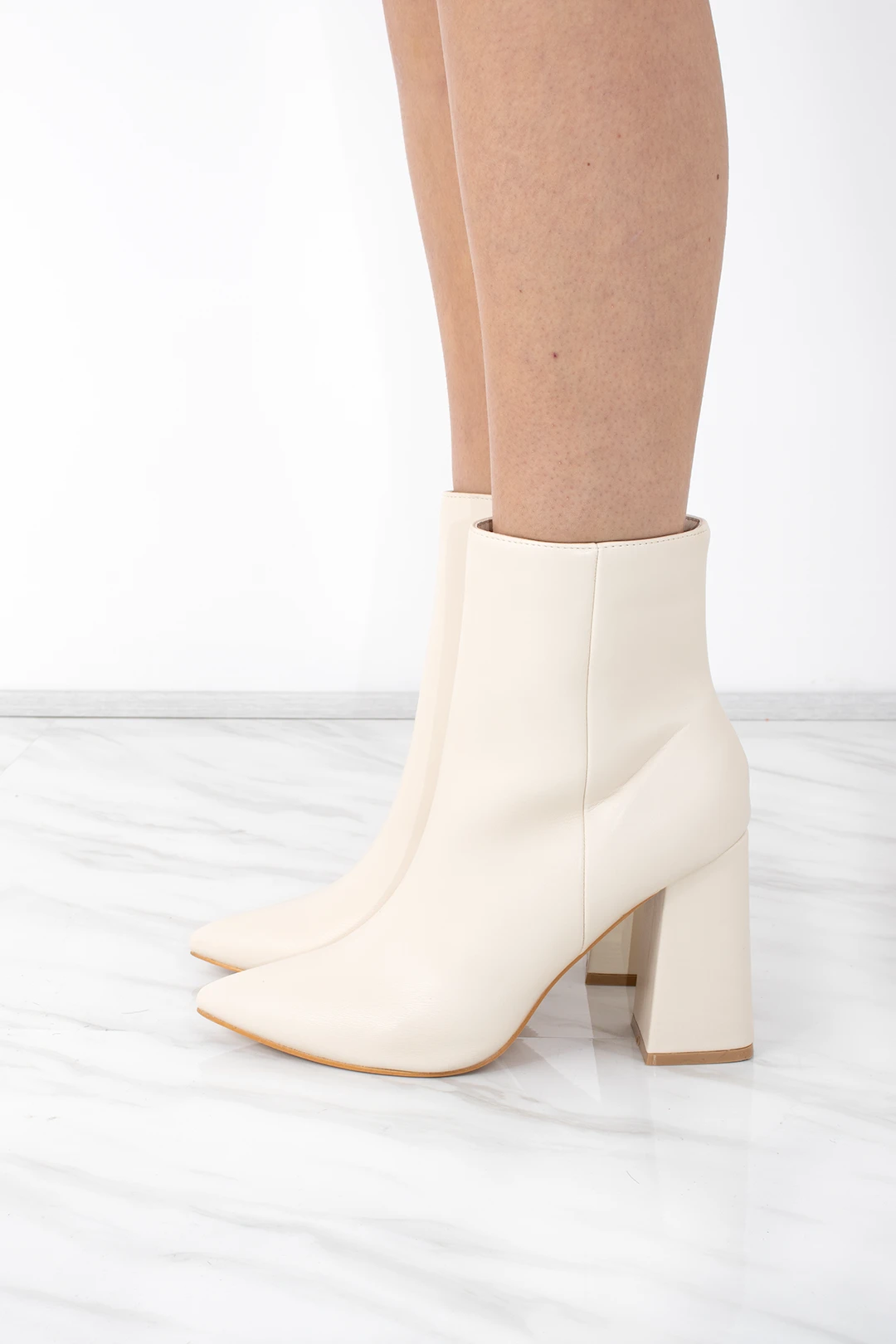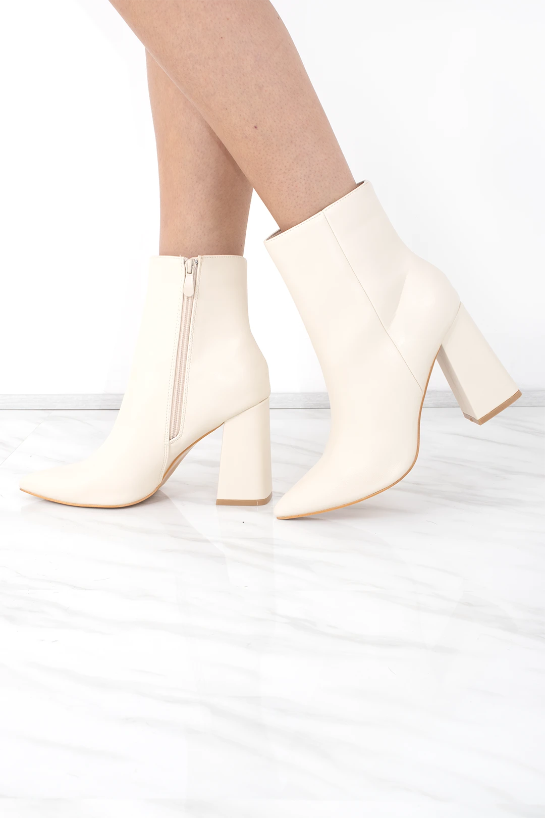 These boots are to die for. We are obsessed. Featuring a faux leather material, with a pointed toe, a sculptured block heel in a calf boot design. The ultimate sophisticated and sleek boot