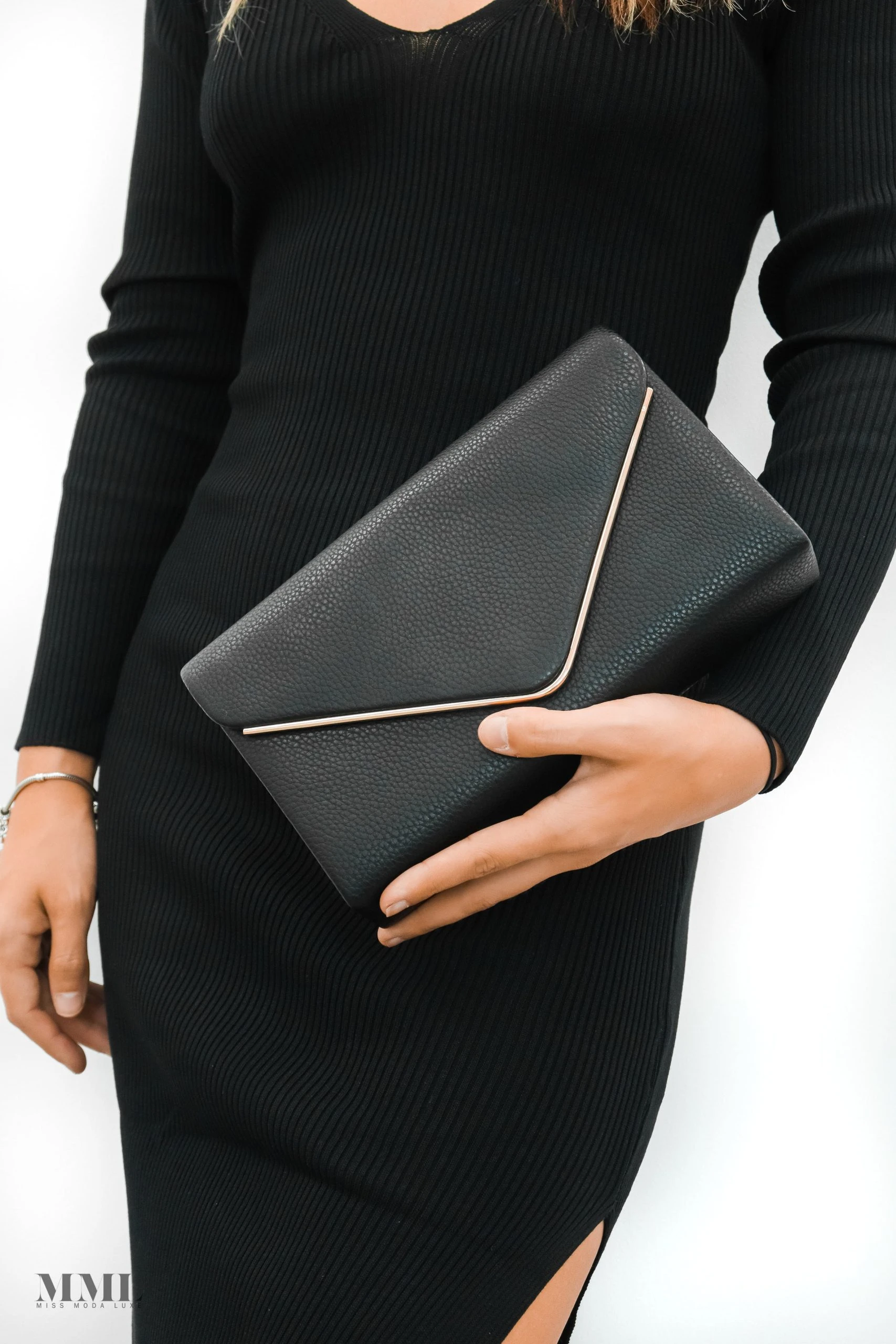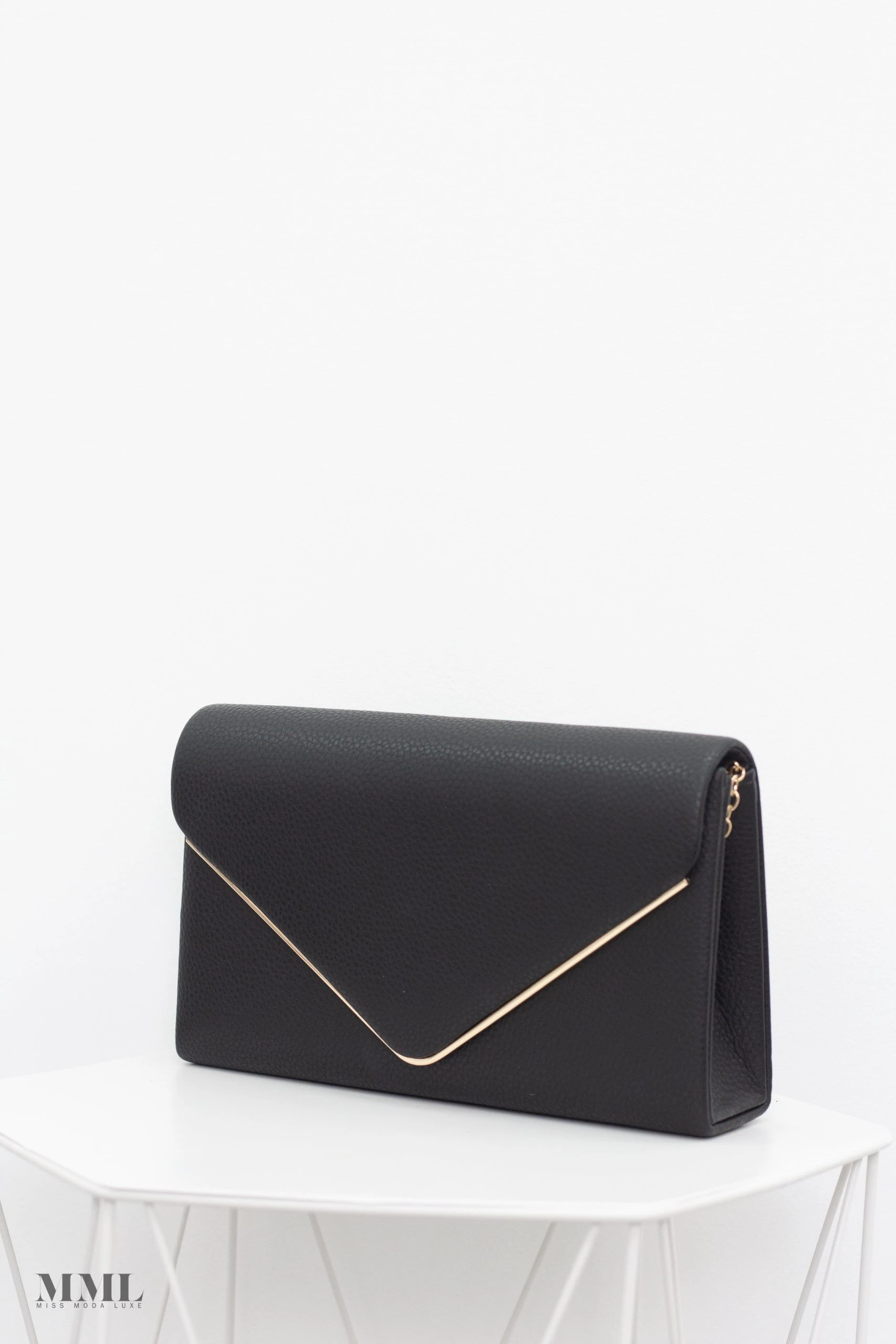 Miss Moda Luxe ENVELOPE BLACK CLUTCH CHAIN HANDBAG