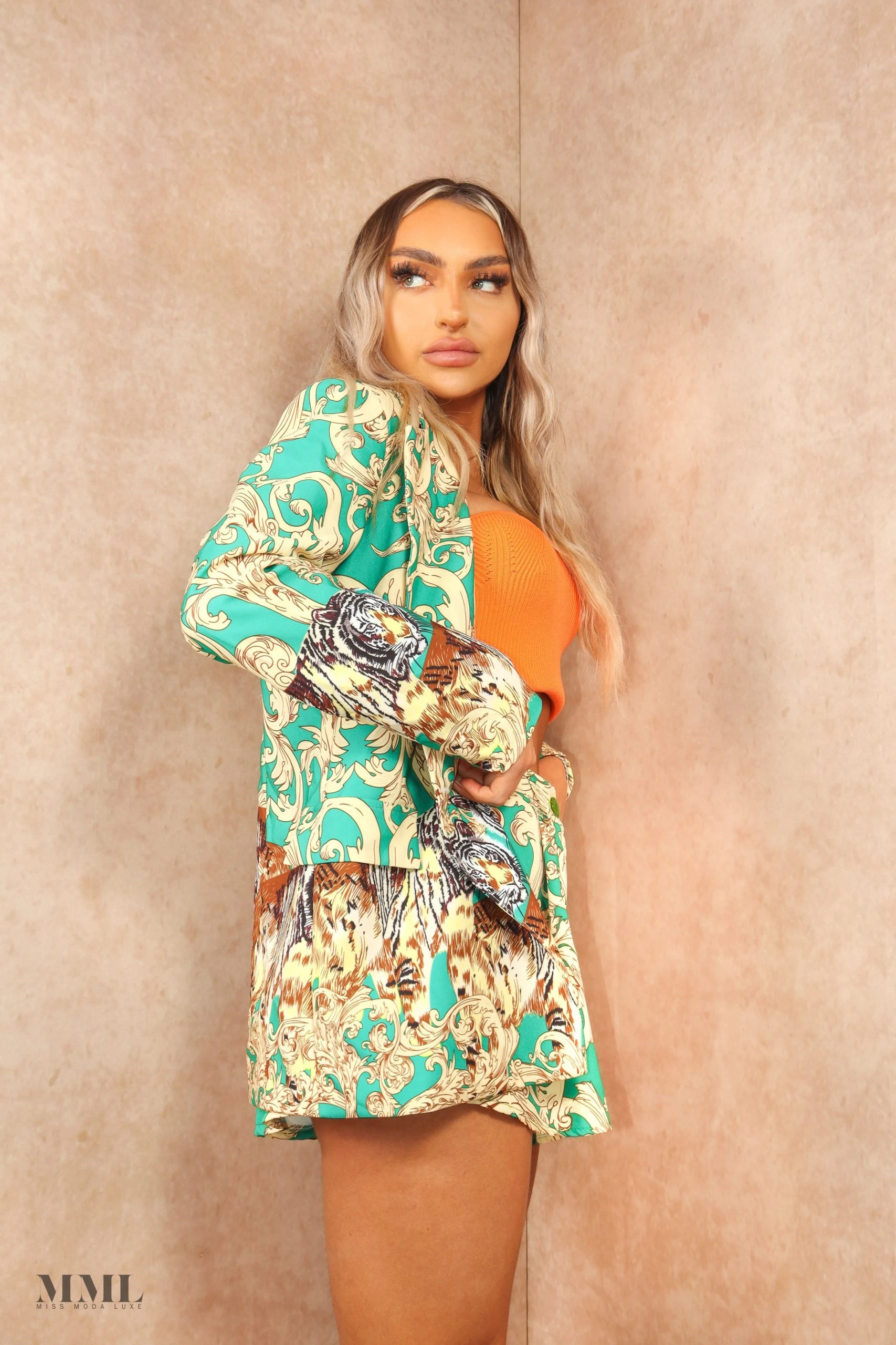 Get your weekend fit sorted with this must have paisley tiger print tailored printed set doll! Featuring a luxury tailored fit, paisley and tiger print design detailing we can’t get enough. Style up with our must have lace up heels and a mini bag for a look we can’t get enough out.