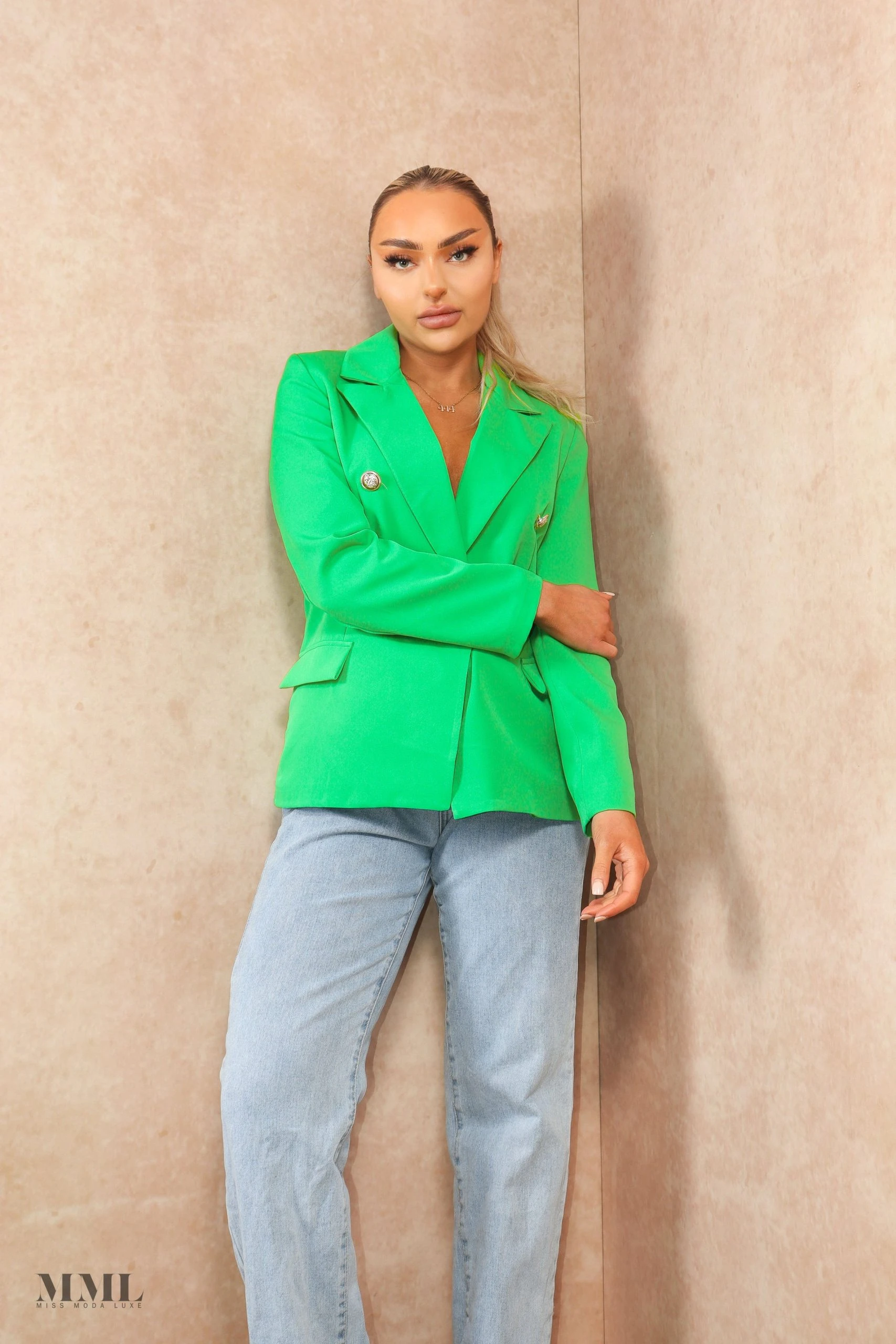 Level up your wardrobe with this must have Pink Premium Structured Gold Button Detailed Luxury Blazer Babe! Featuring a thick layered material, shoulder pad and gold button detailing we are obsessed. Style with a classic pair of denim and heels for a date night look we love.