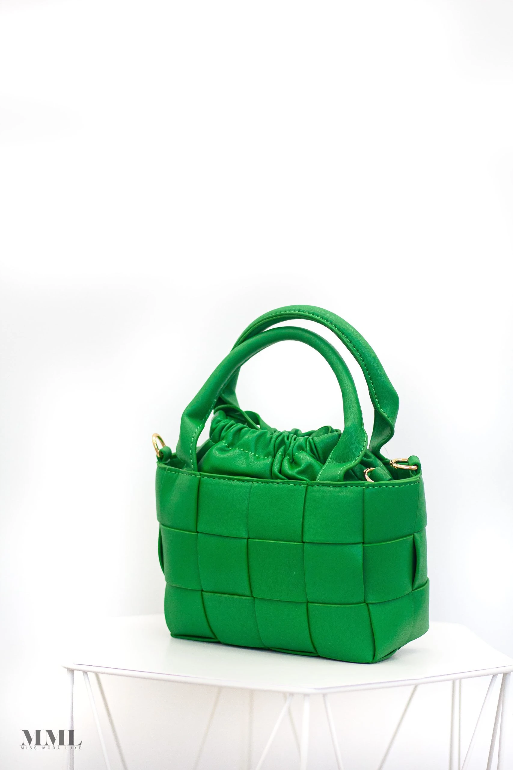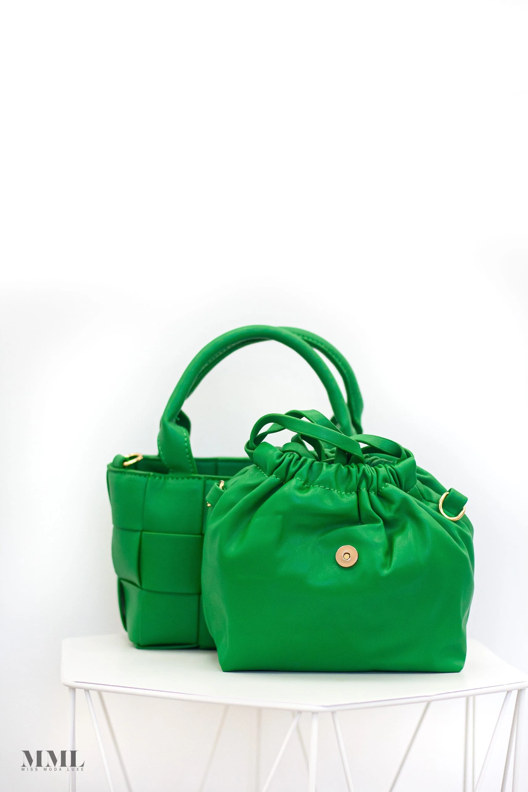Miss Moda Luxe GREEN WOVEN BUCKET BAG AND POUCH