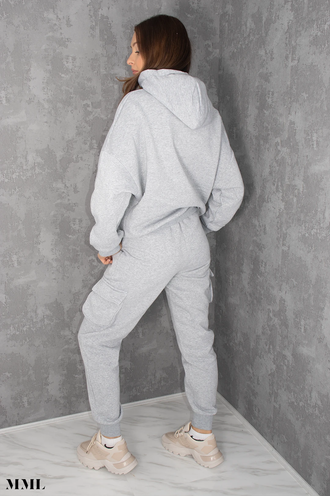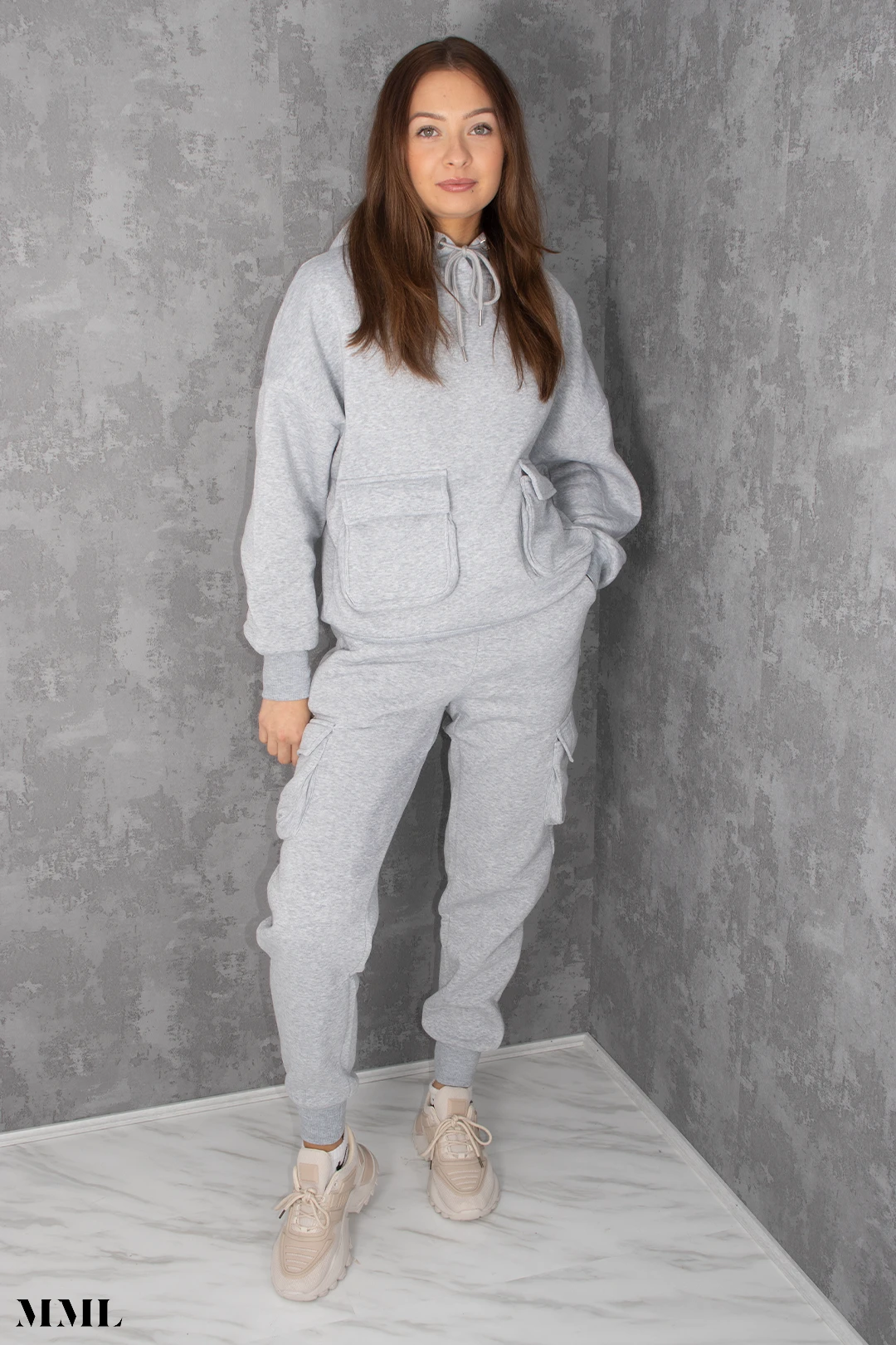 Miss Moda Luxe Grey Cargo Pocket Co Ord Tracksuit Set