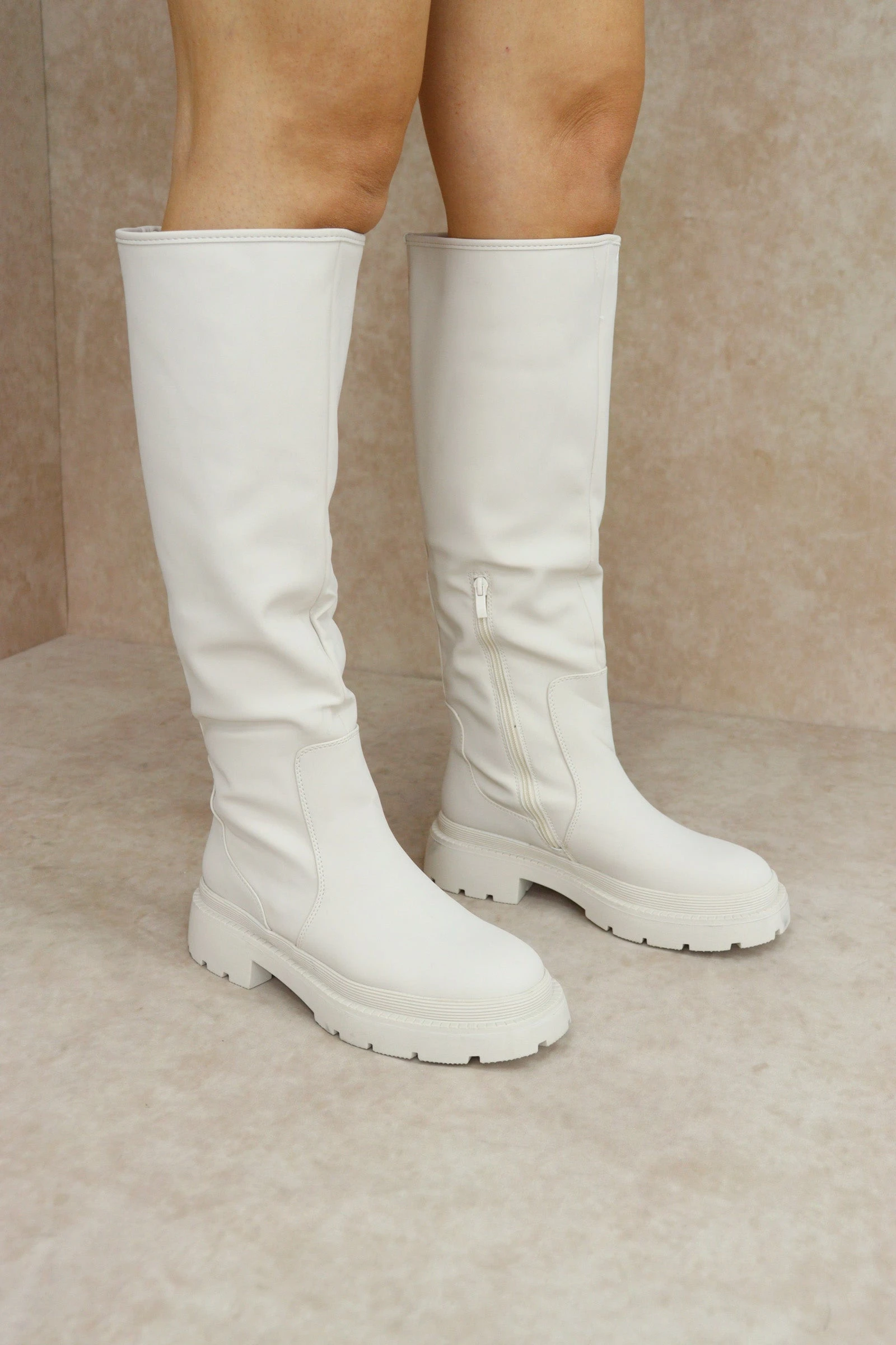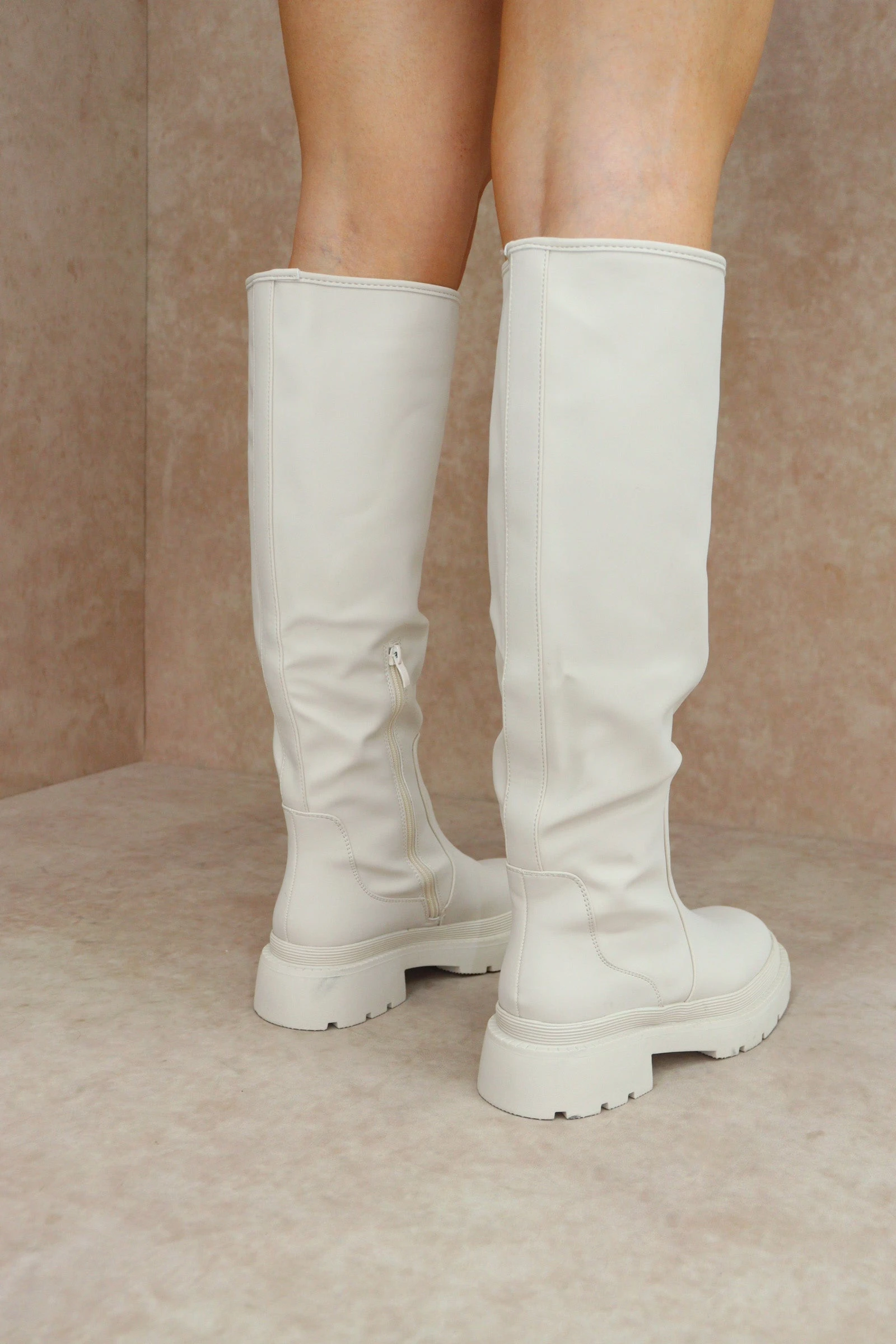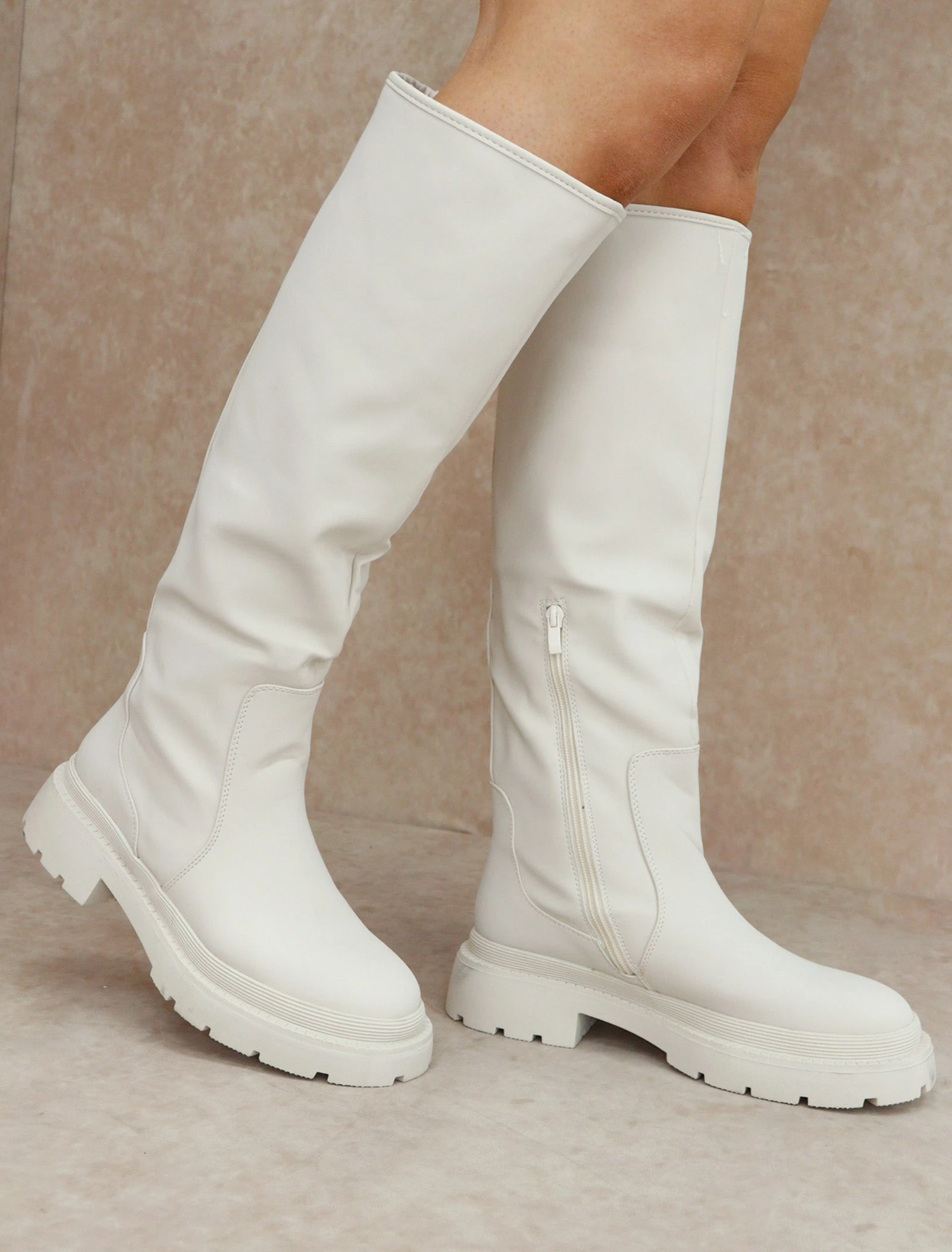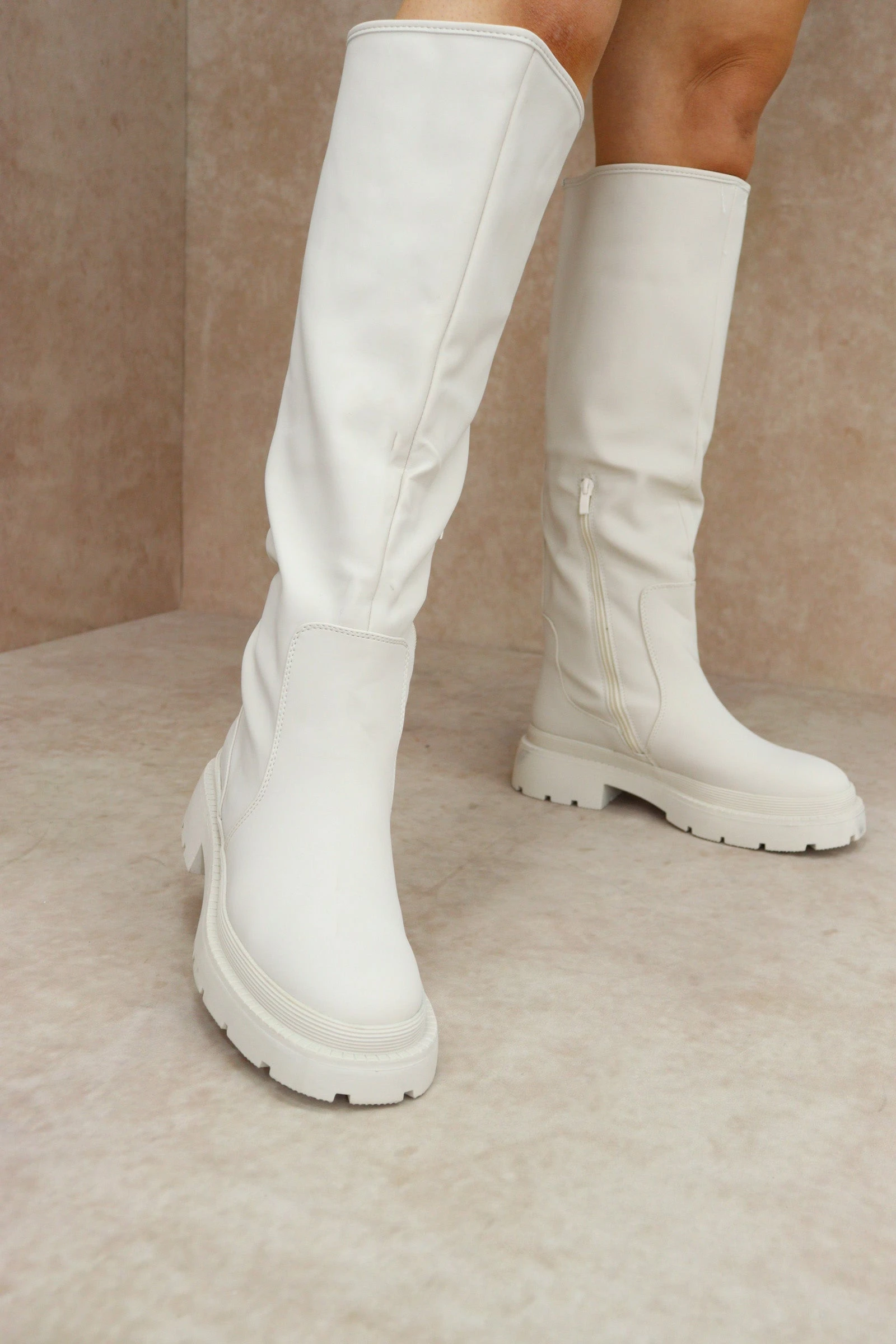 Stay on trend in these wellie boots, perfect for the winter weather. Featuring rubberised material, side zip fastenings, thick cleated soles and wellie boot design.