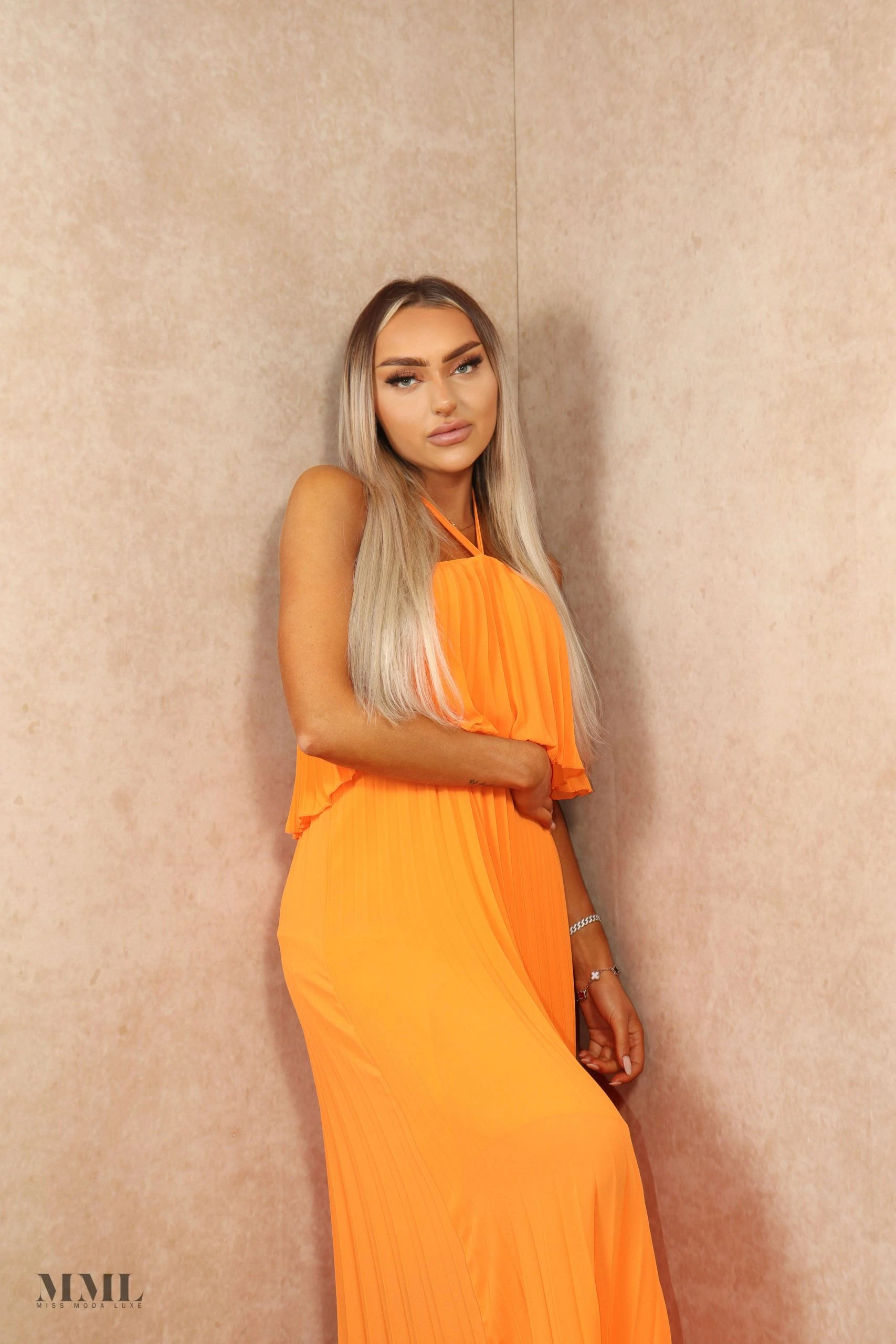 Summers around the corner and we have got you covered muses! This must have halterneck maxi dress is perfect for the upcoming season, featuring a layered chiffon material, halterneck detailing and pleated fabric we can’t get enough! Style with our new in sandals for a look we are obsessing over.Â
