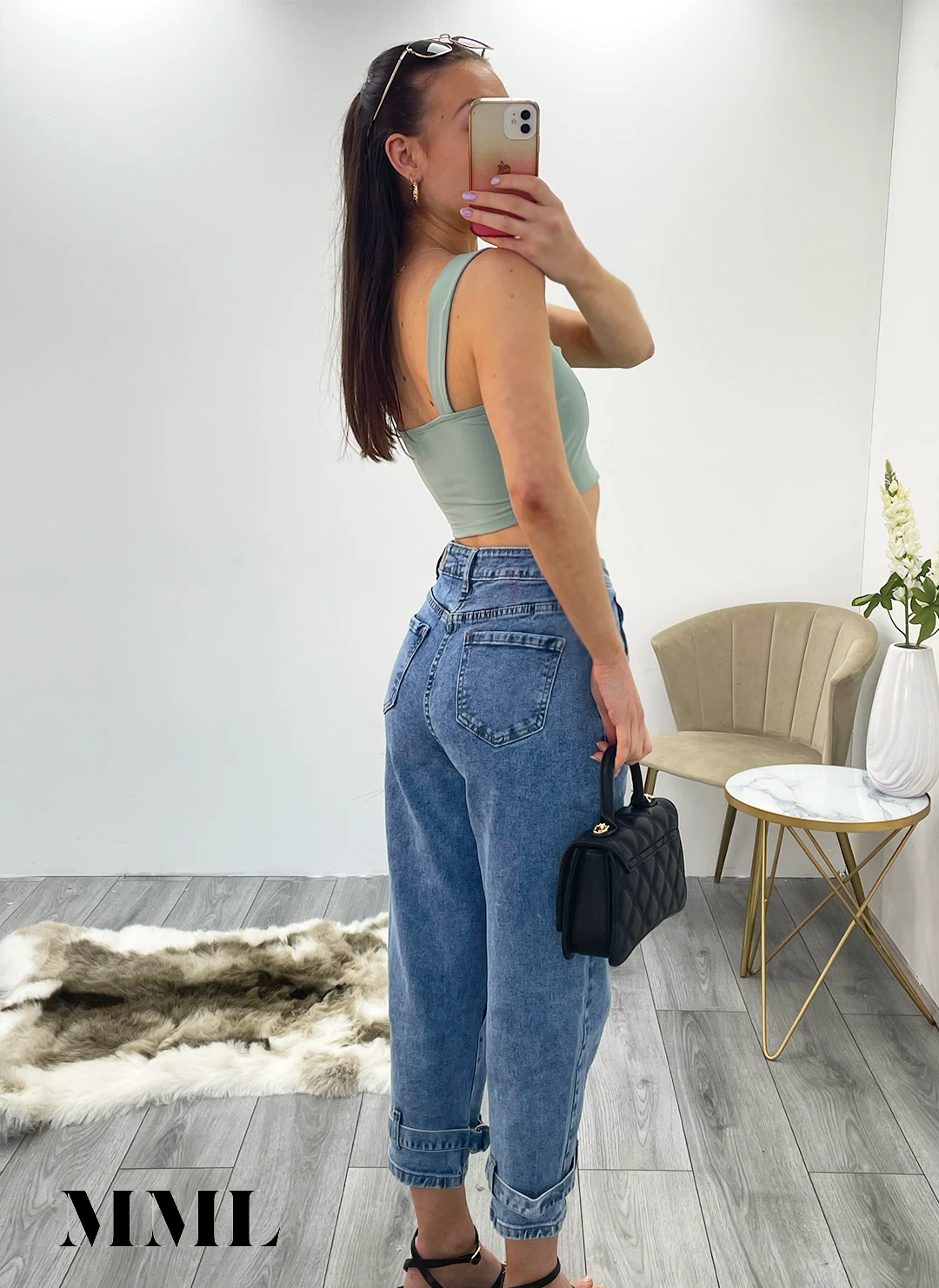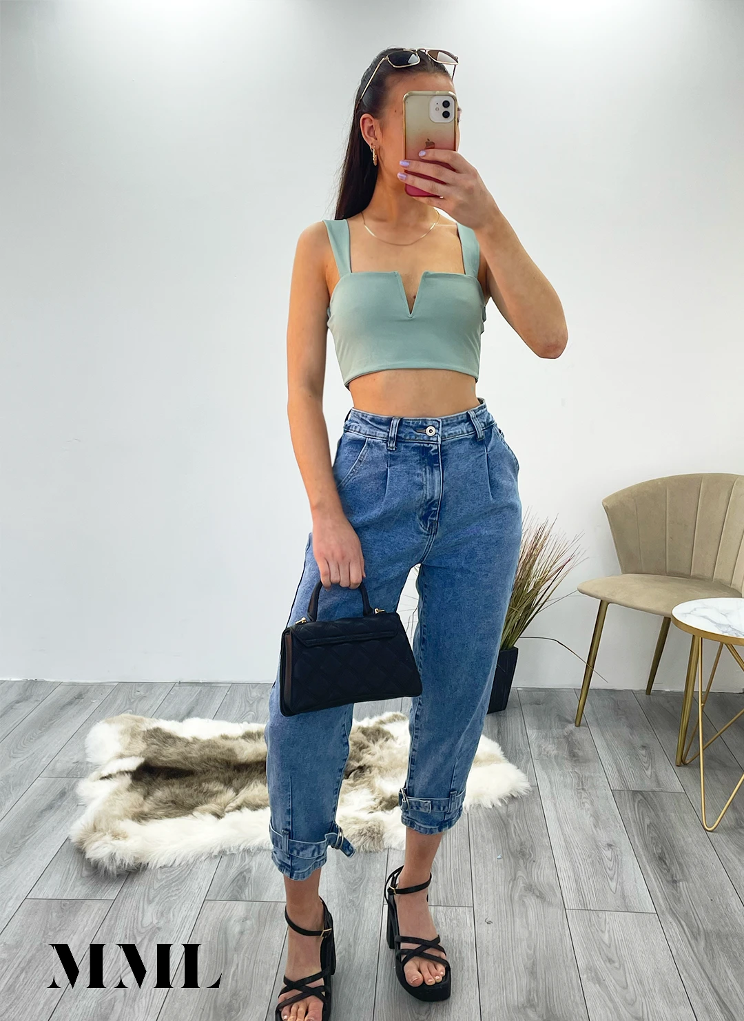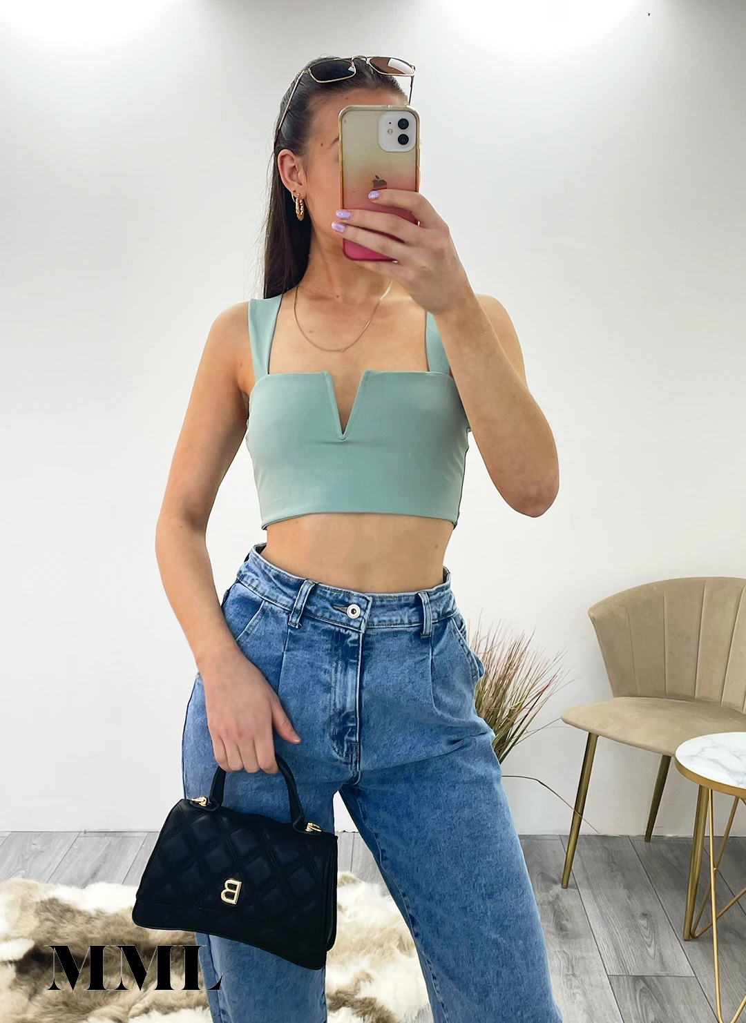 Miss Moda Luxe Sage Green Slinky V Notch Crop Top
