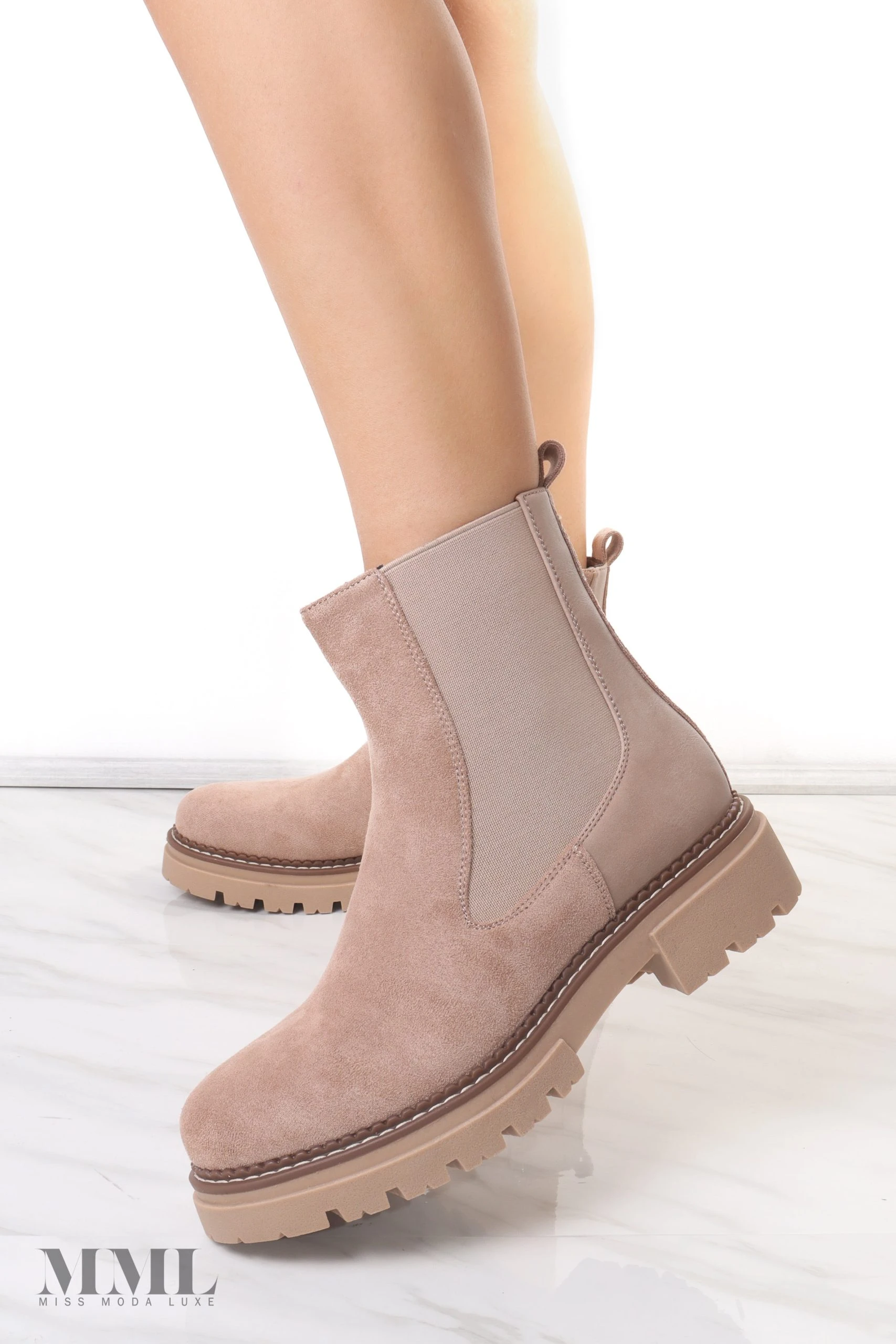 Wardrobe essential Chelsea boot. Featuring a chunky soul and a side zip fastening. Contrasting stitch detail. Elastic stretch around the ankle of the boot.