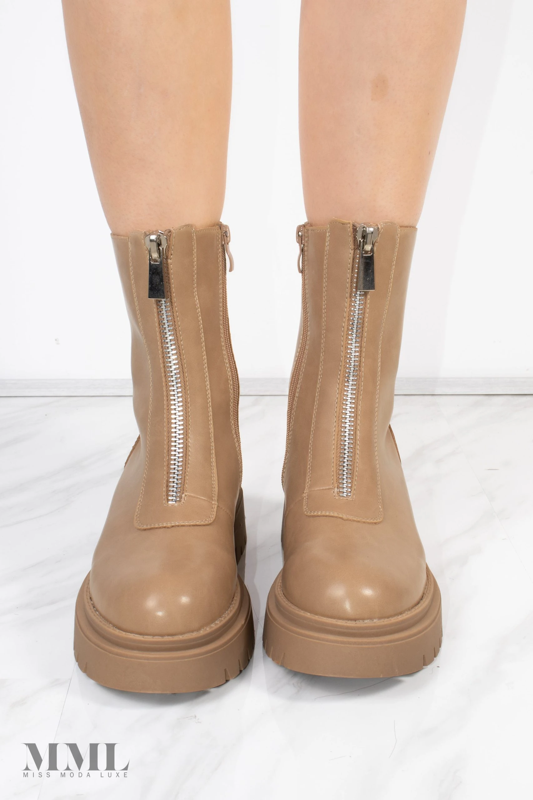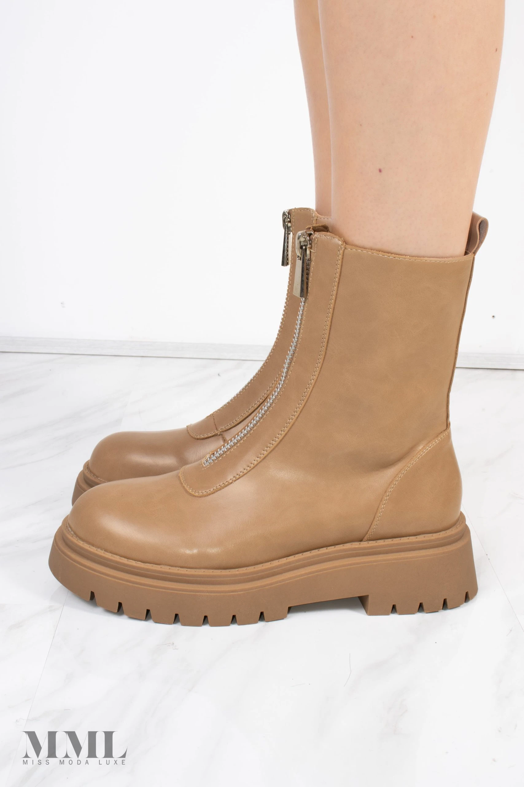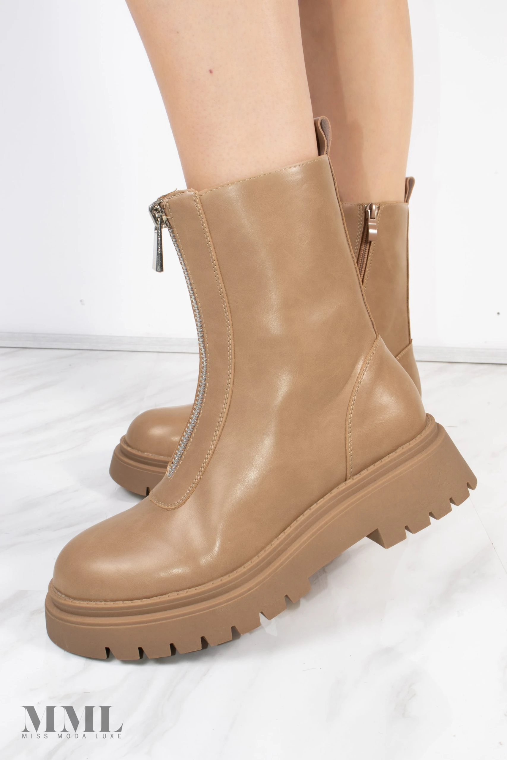 Add a little edge to your shoedrobe with these ankle boots. Featuring a PU faux leather material with a double cleated sole and a zip front design. Just add to your outfit of the day for an instant chic finish.