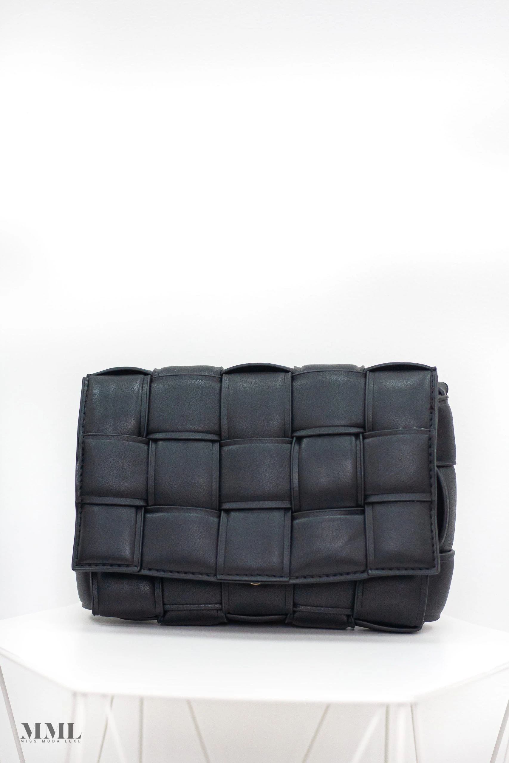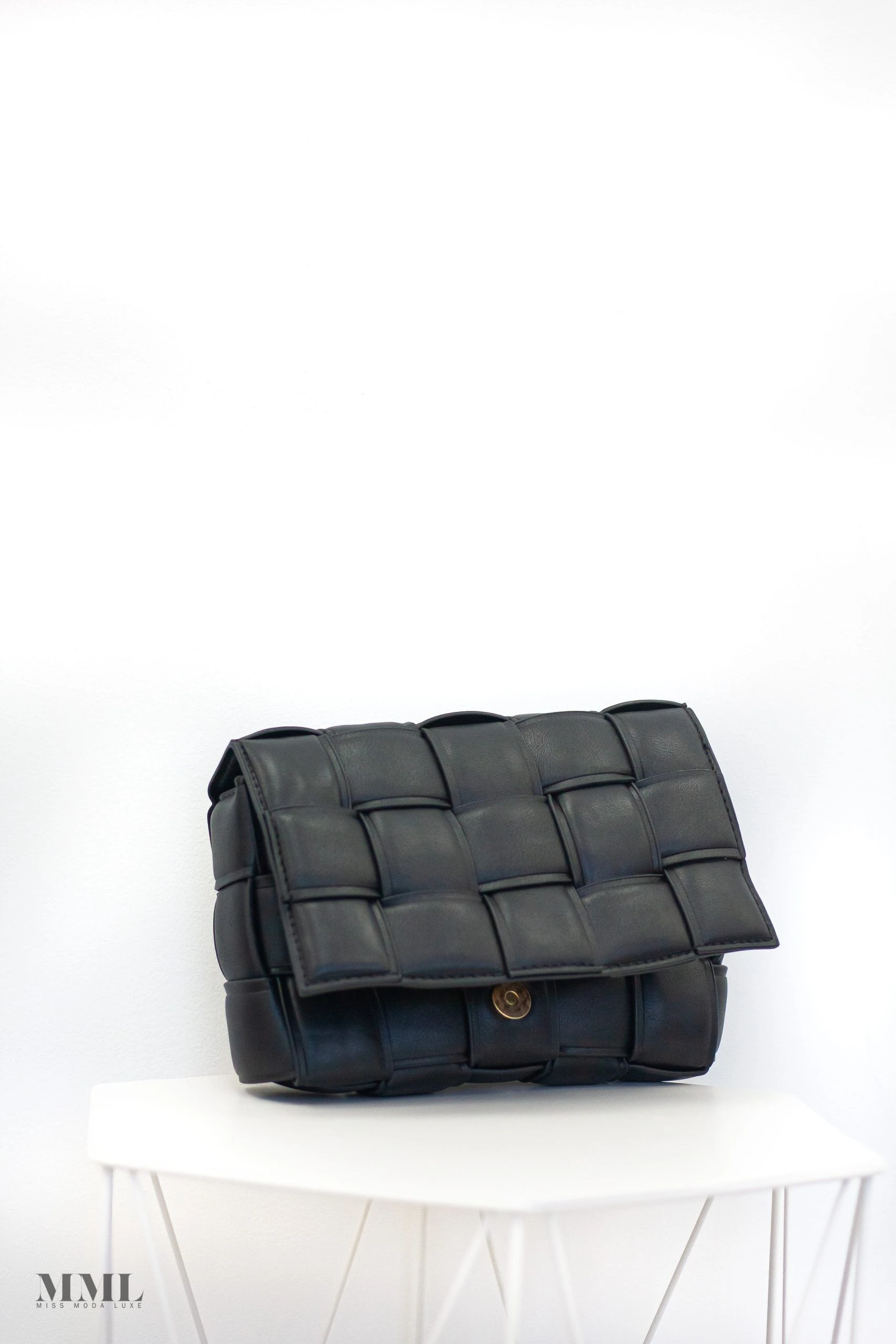 Miss Moda Luxe THE ZHARA BLACK WOVEN CLUTCH BAG