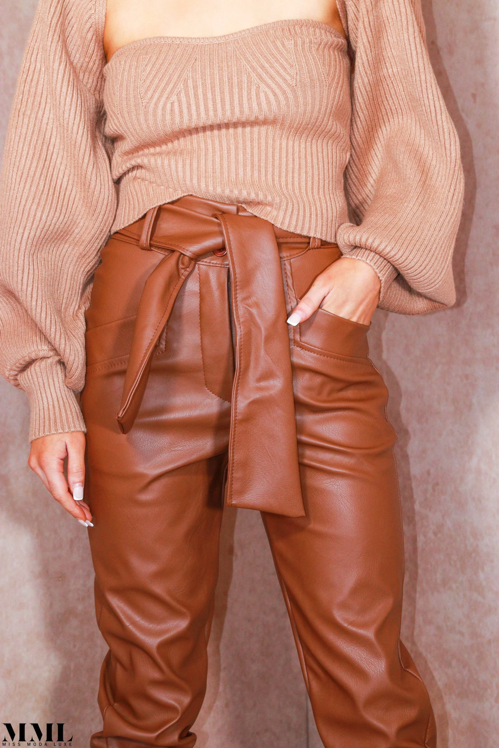 These cargo bottoms are sure to get you noticed muse. Featuring a premium faux leather material with pocket detailing and elasticated hems, we are in love. Wear with our two piece arm warmer knit set and ANTONIA heels to finish the look.