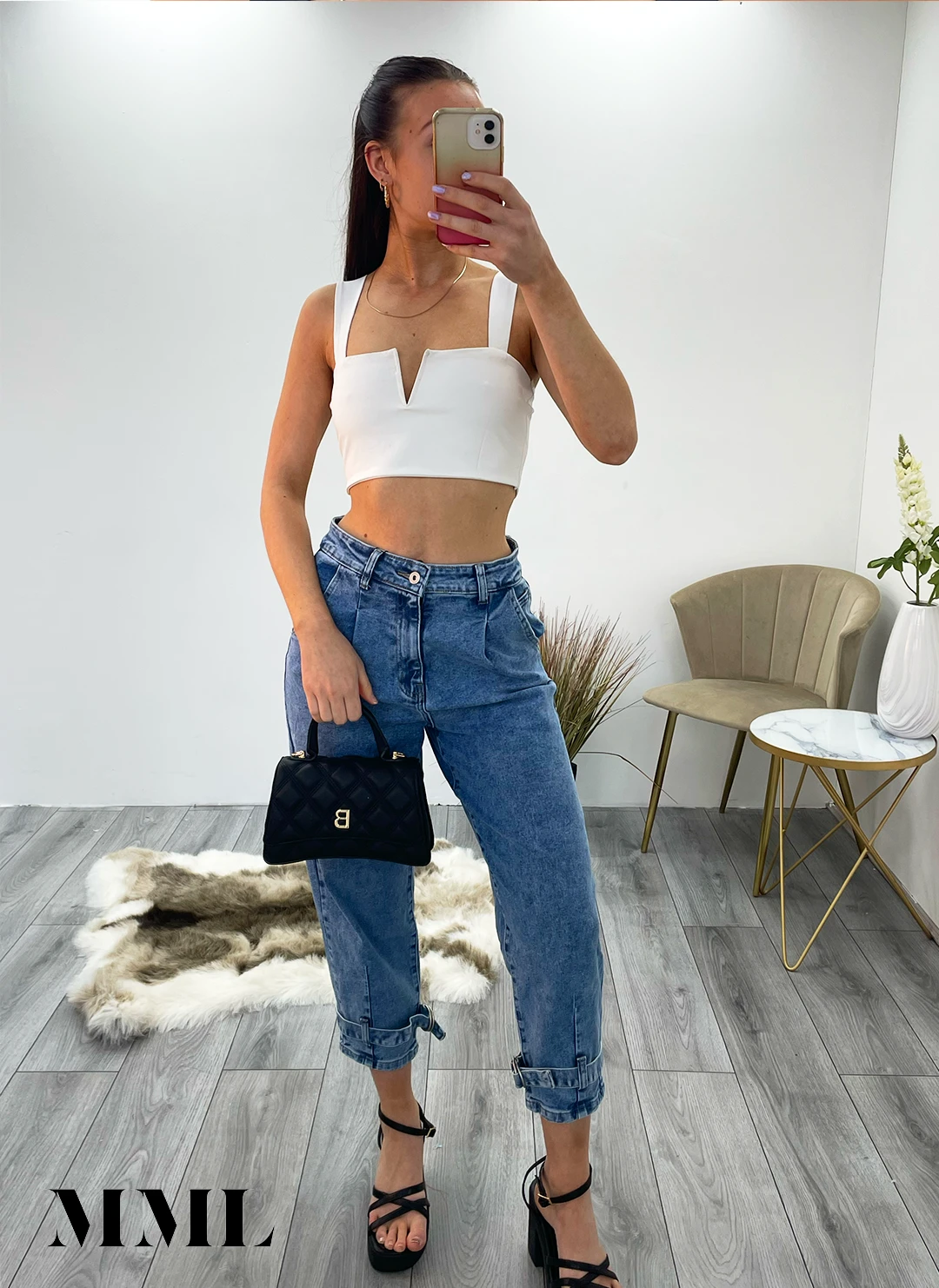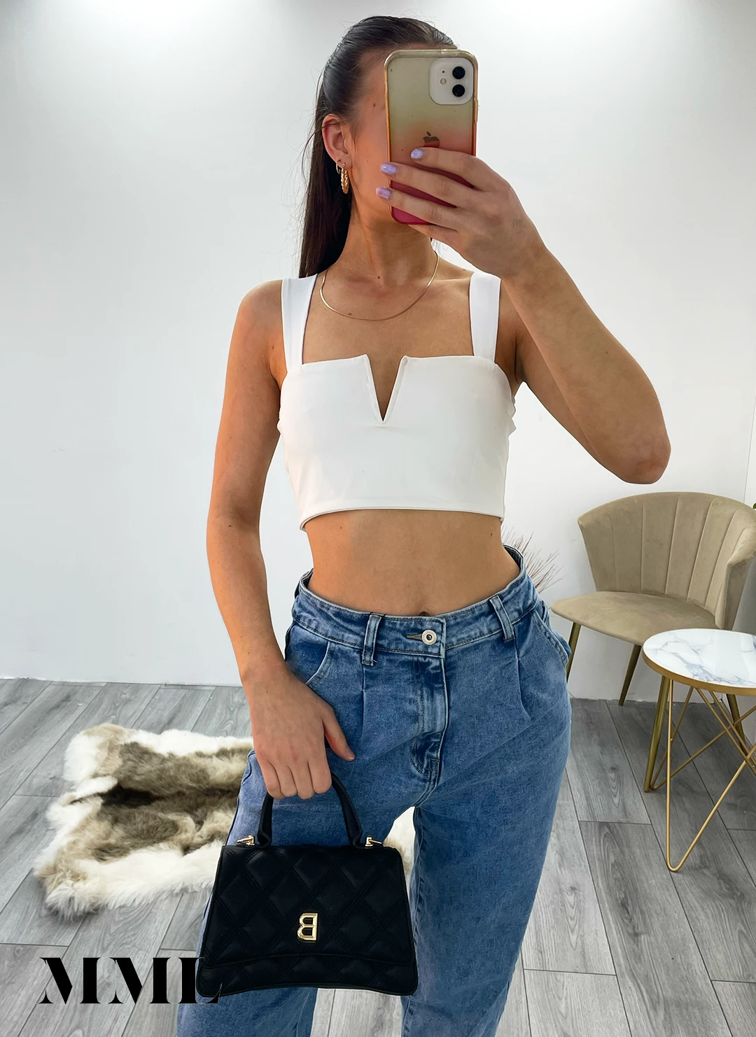 This slinky crop top is super flattering for any shape. Featuring a slinky sculpting material with a straight design and cropped length, we are obsessed. This versatile style is perfect for adding to any outfit and can be dressed up or down.