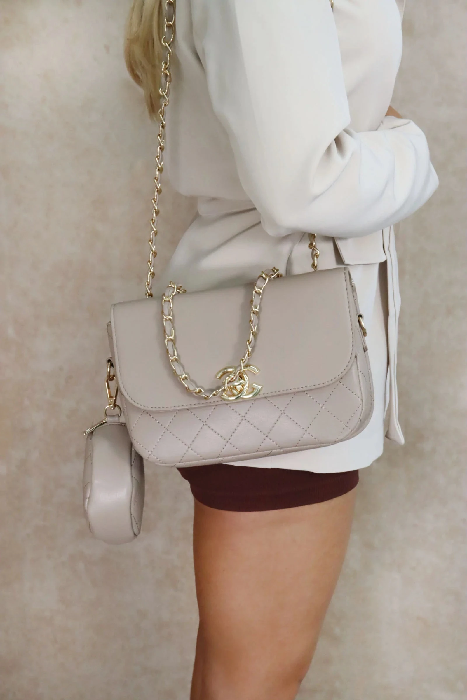 Elevate your accessory collection with this quilted faux leather look bag. With gold detailing and pouch purse this is a must have for your going out collection!