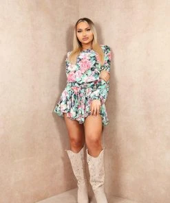 Miss Moda Luxe Black Oversized Floral Print Puffed Sleeved Braided Waist Belted Floaty Dress