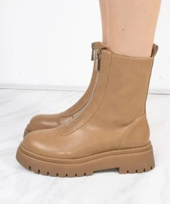 Miss Moda Luxe Taupe PU Double Cleated Sole Zip Front Ankle Boots